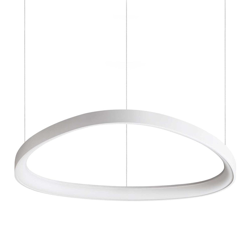 Rosette and lampshade in powder-coated or plated metal. Opal polycarbonate diffuser. Transparent PVC cable. Models with diameters of 810 mm and 610 mm also available in the dimmable DALI/Push version.