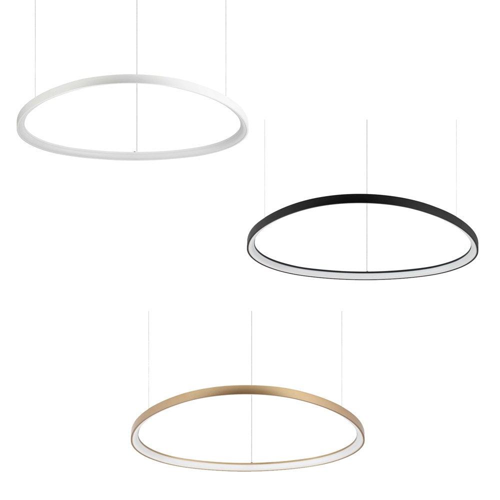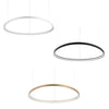 Rosette and lampshade in powder-coated or plated metal. Opal polycarbonate diffuser. Transparent PVC cable. Models with diameters of 810 mm and 610 mm also available in the dimmable DALI/Push version.