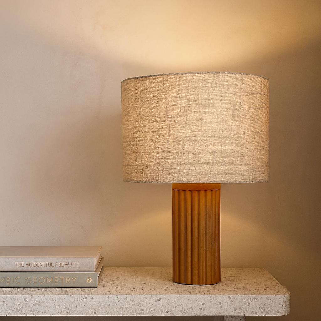 The Jacona Table Lamp brings together natural warmth and modern simplicity in a beautifully balanced design. Featuring a wooden base with organic texture and a neutral-toned fabric shade, this lamp offers understated elegance. Its minimalist style allows it to blend effortlessly into a variety of interior settings, from scandi-inspired to contemporary spaces. Perfect for creating a soft, ambient glow in any room.