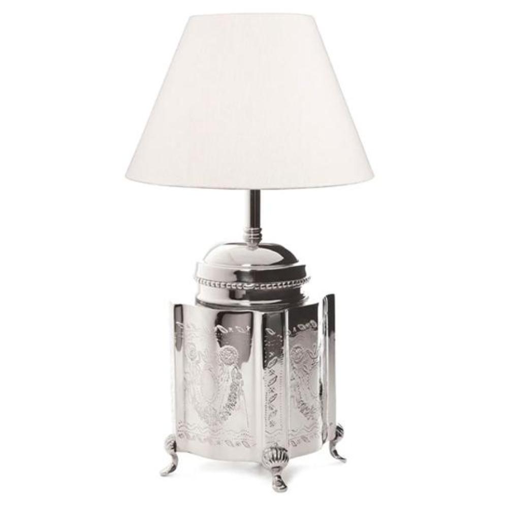 The Kensington Tea Caddy Lamp utilises a stunning shiny nickel finish to make the item stand out in your home or workplace whilst the ornate detailing in the nickel demonstrates the undeniable quality of Emac & Lawton's products.