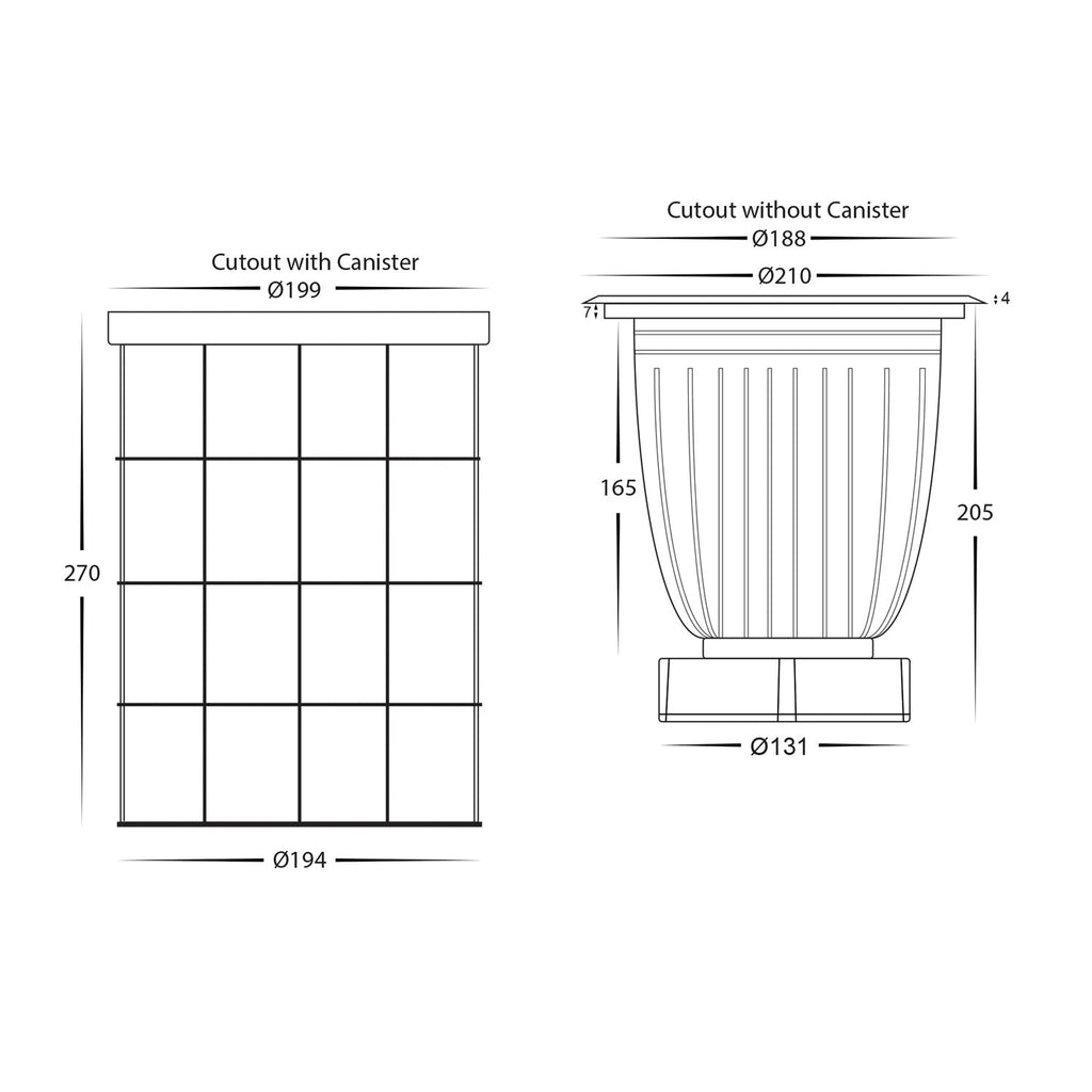 • Cut Out: ø188mm (w/o canister)