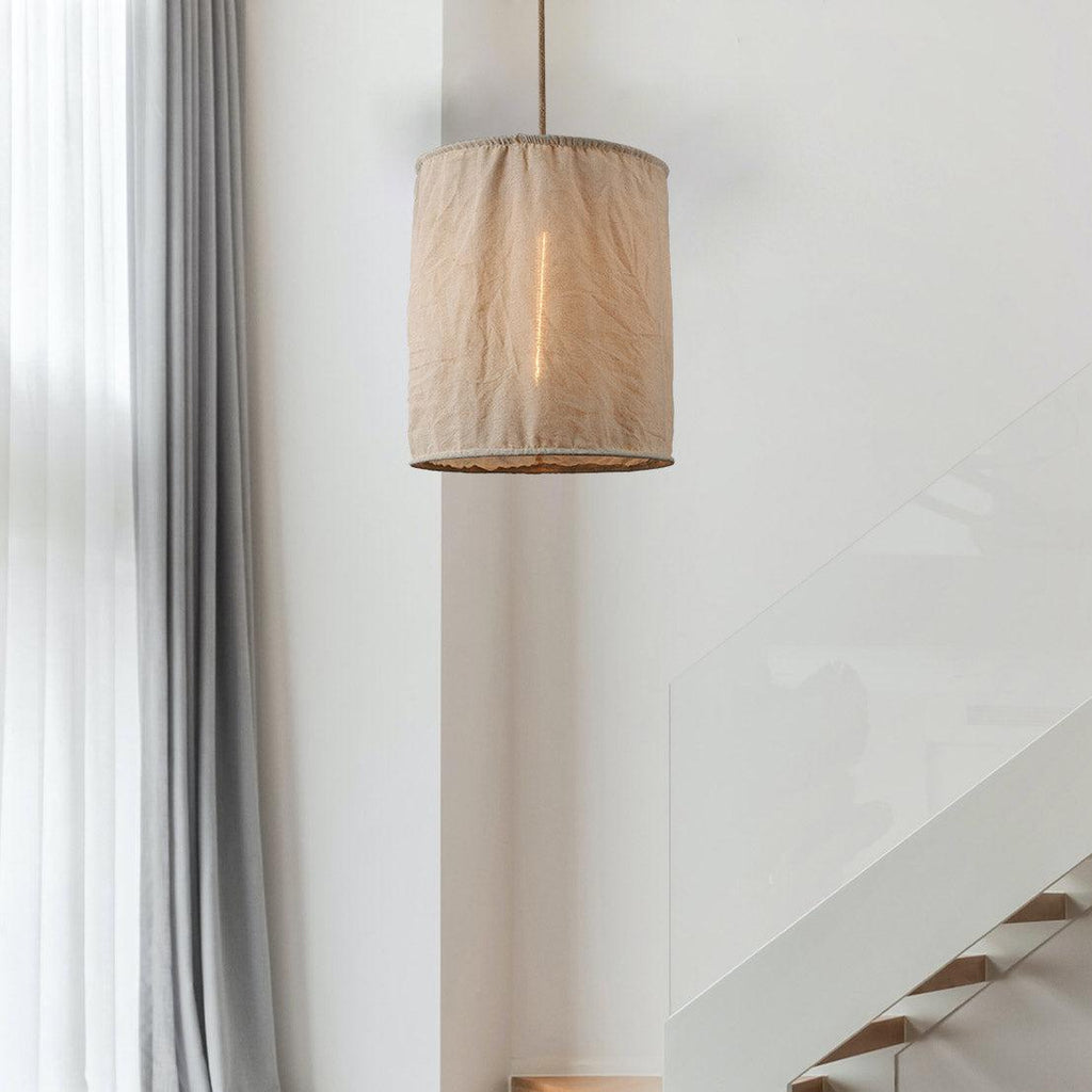 The Kya pendant and wall light offer soft ambient lighting, utilising natural linen lampshades, perfect for smooth light tones in relaxing spaces like loungerooms and sitting areas. The Kya pendant lamp comes in small and large sizes hung with a sturdy rope style cable.