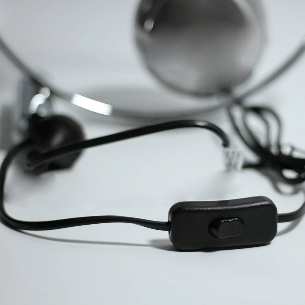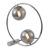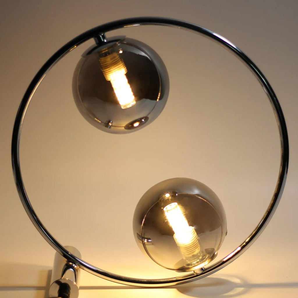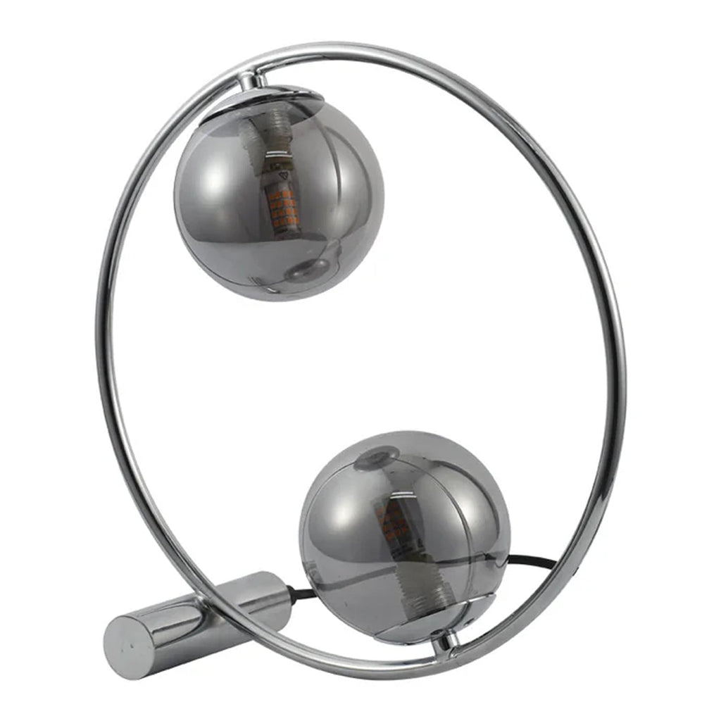 The Larique Table Lamp is a stunning chrome lighting piece that is artistically designed with style. The spectacular round metal frame is balanced with a short horizontal support rod that adds to the aesthetic of the lamp, while the two sphere glass shades finish it off to perfection.