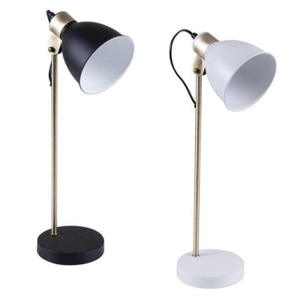 LEAH-DL desk lamp Series combines a metal base, thin metal frame and a traditional conical shade, which offers a modern and linear appearance for most modern interior decors. Ideal as a feature lamp in living rooms and bedrooms. Featuring plated Antique Brass and painted Matt Black and Matt White highlights. Part of a family of matching desk lamp and floor lamp.