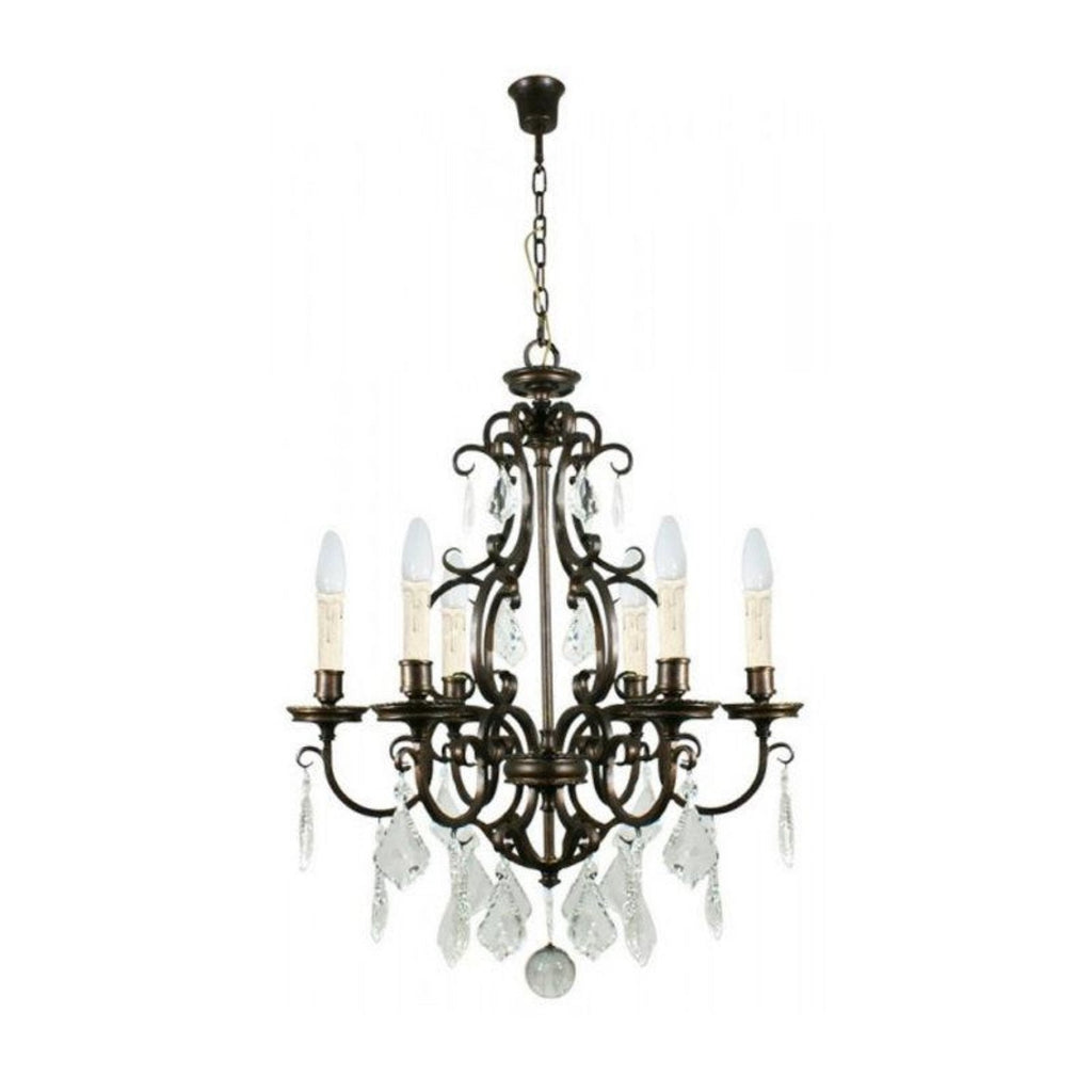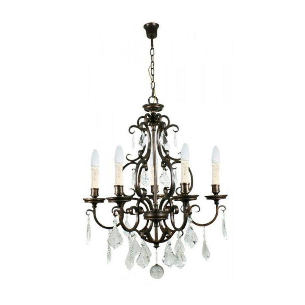 Louis 15th indoor chain pendant light E14 in bronze finish with quality crystal drops available in 5, 6, 15 or 24 Light (10 Light Lower + 5 Light Upper).