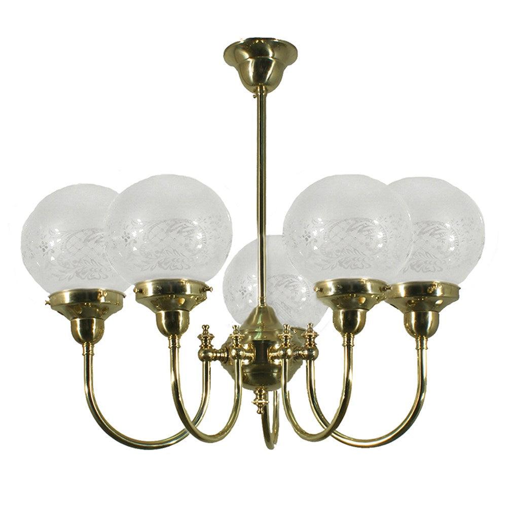 Luke 5Lt Pendant Light in Brass w/ 6" Sheffield Glass