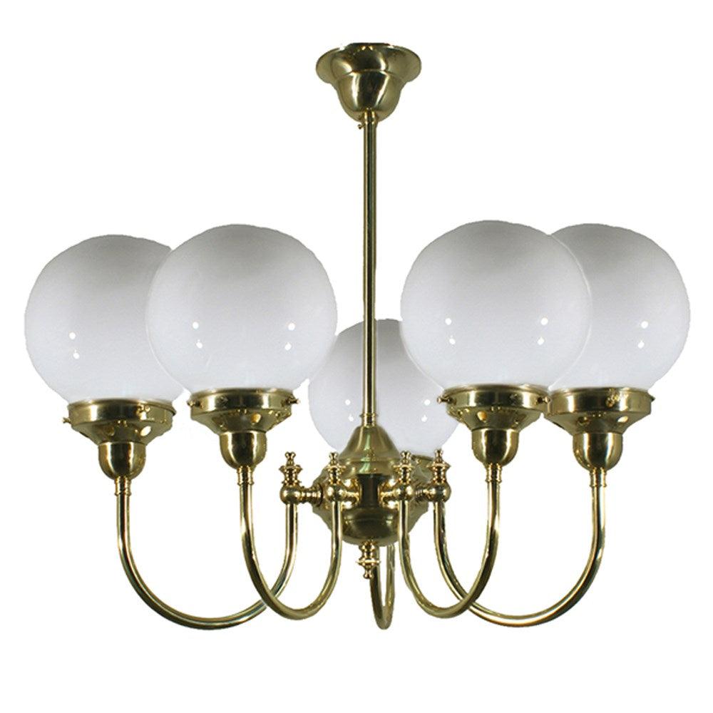 Luke Pendant Light 5Lt in Brass with Sphere Opal Glass