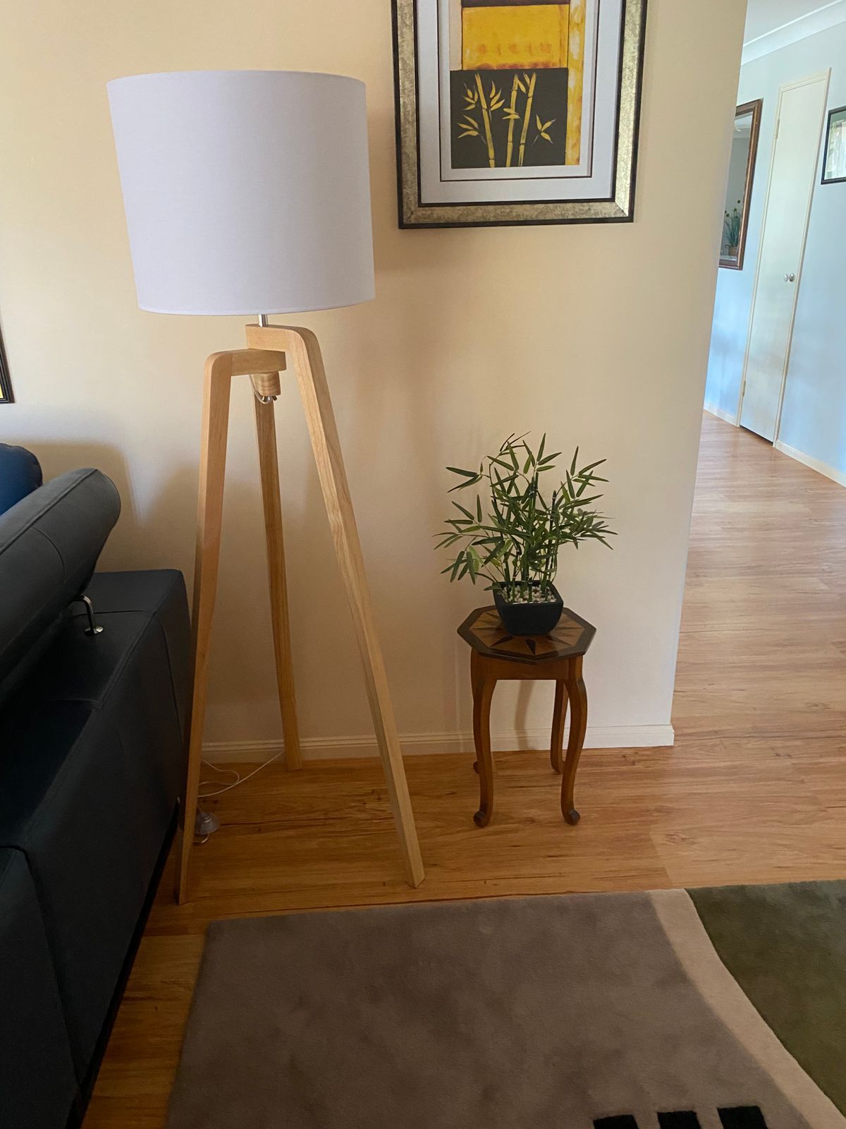 LUND Scandi natural timber lamp is available in both a floor and table version, to create the complete look in your room. The natural timber is finished with a light clear coating. Clear cord (3m long for the floor lamp) runs from under the central housing and features an in-line on/off foot switch. Supplied with a stylish drum, poly cotton hard-backed shade in white, LUND is a lovely choice for a living room. The widest part of the LUND floor lamp is timber legs which sit 500mm apart (the shade is 420mm diameter). LUND base is cleverly shipped flat simply unpack and open out the legs.