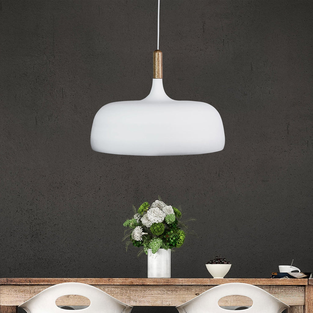 Another stylish piece in our Scandustrial lighting range, the MALT pendant is available in two sizes and colours, making it suitable for clustering or combining with other pendants. Real timber features complete the look. The Malt shade has a white inner, providing better light reflection onto your surface. Ideal for use with an LED or CFL globe.