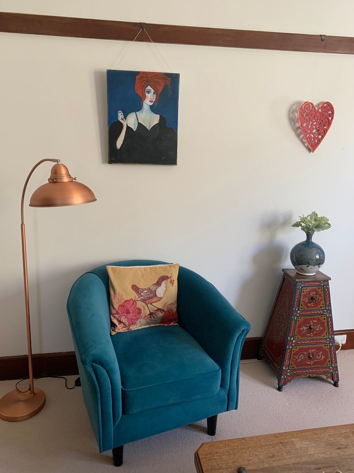 I recently bought this for my small apartment living room to sit next to my lounge. Colour does look lighter in pic (like rose gold) but it is definately a true copper colour in real life. Easy to assemble and love that I can dismantle it too in future if needed. Super fast delivery. I didn't want a bright globe - tried it with 60w and it was too bright so I bought some 25w Carbon Filament Vintage Warm style globes to try and it gives such a warm/cosy effect - for mood lighting if you don't want all the lights on. Very happy.