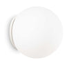 Base and fixing system in white metal. Sphere diffuser in blown and etched white glass.