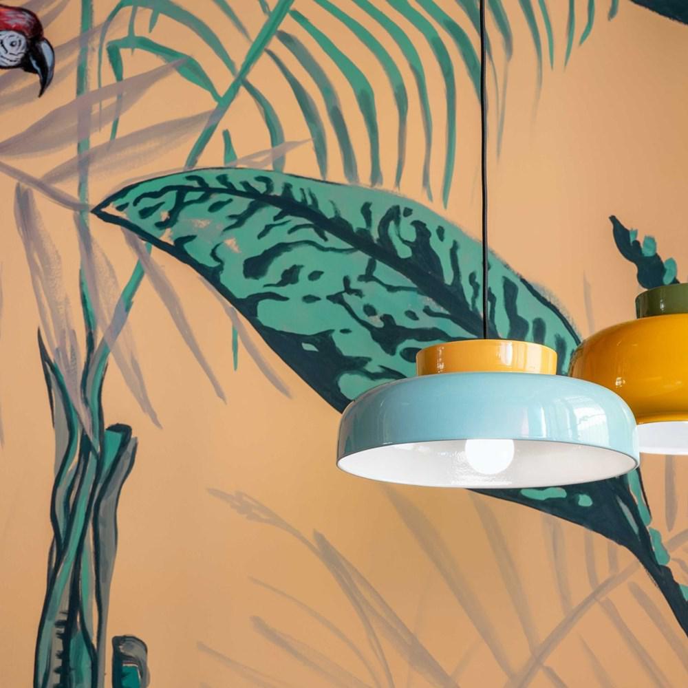 Maracana Pendant Light 1Lt in Light Blue/Orange, Yellow/Light Blue or Yellow/Sage Green