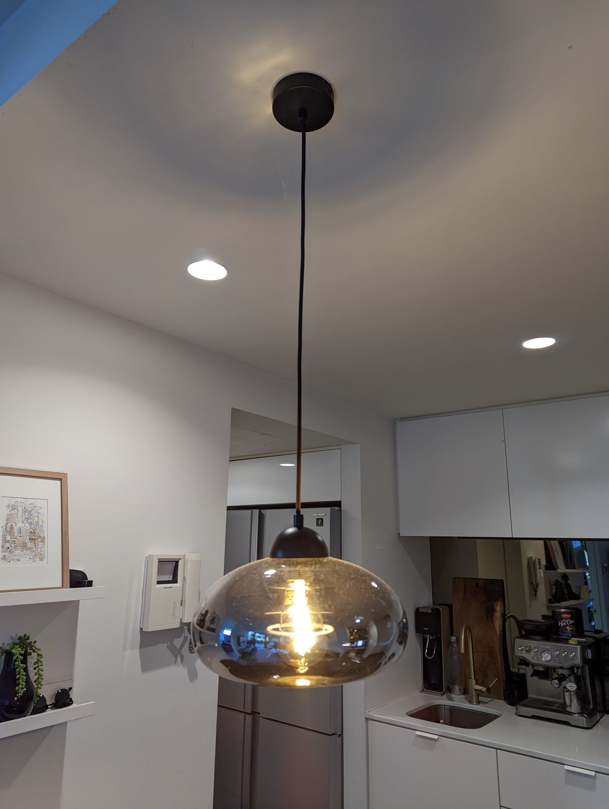 Look great with the special round filament type light bulb, especially once the cables straighten out.