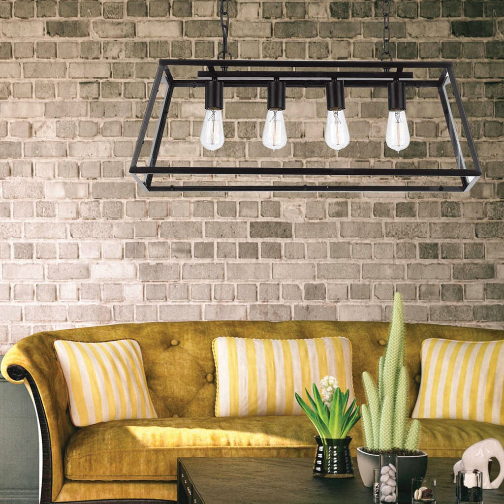 • Modern Oiled Bronze and Clear 4 Light Pendant Light