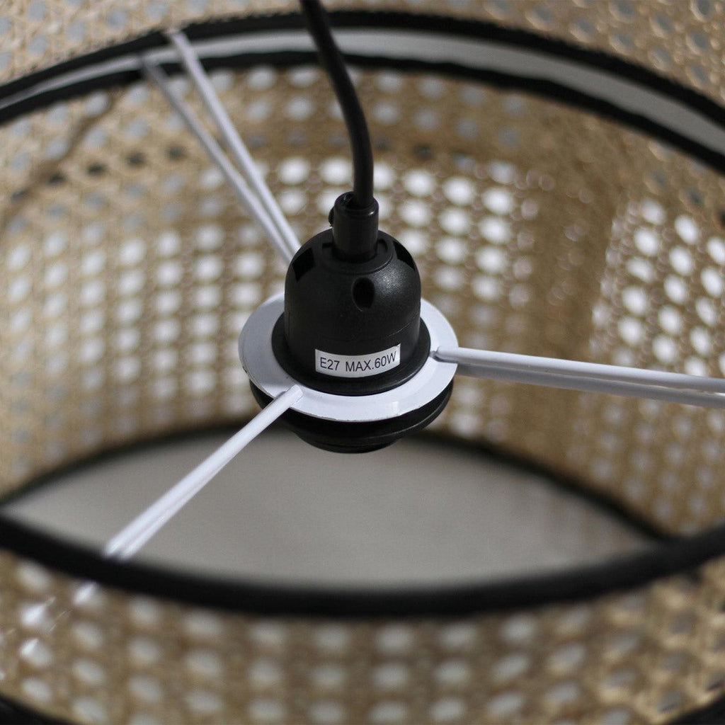 When the E27 globe is illuminated within the pendant, light radiates through the rattan and looks fabulous in any room of the house. The quality metal frame ensures the Miquita Pendant Light will keep its charming shape for years to come while the black suspension cord can be adjusted to suit the desired height.