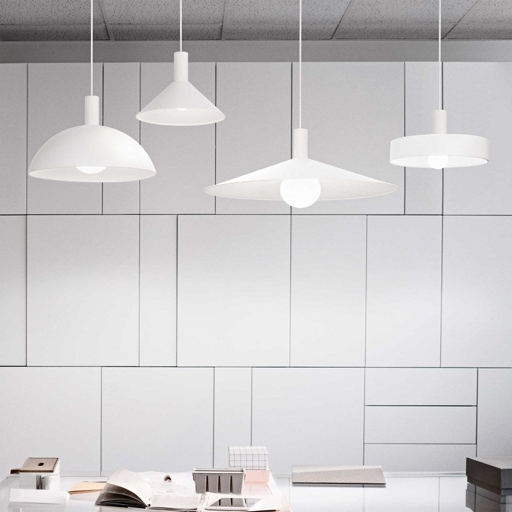 Rosette and interchangeable lampshades in powder-coated metal. PVC cable. Finishes: white or black.
