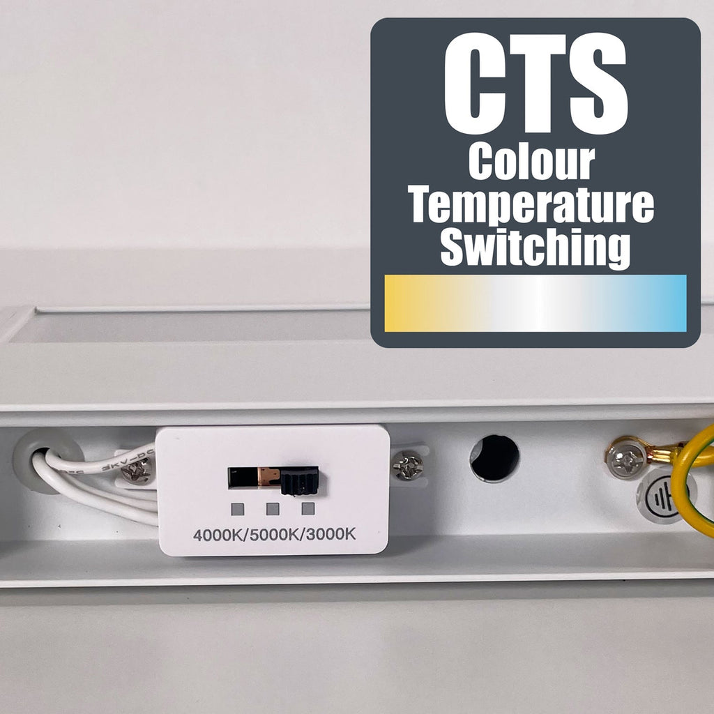 MODE.120 CTS ADJUSTABLE WALL LIGHT WHITE. CTS (Colour Temperature Switching) allows the installing electrician to select the preferred colour temperature.