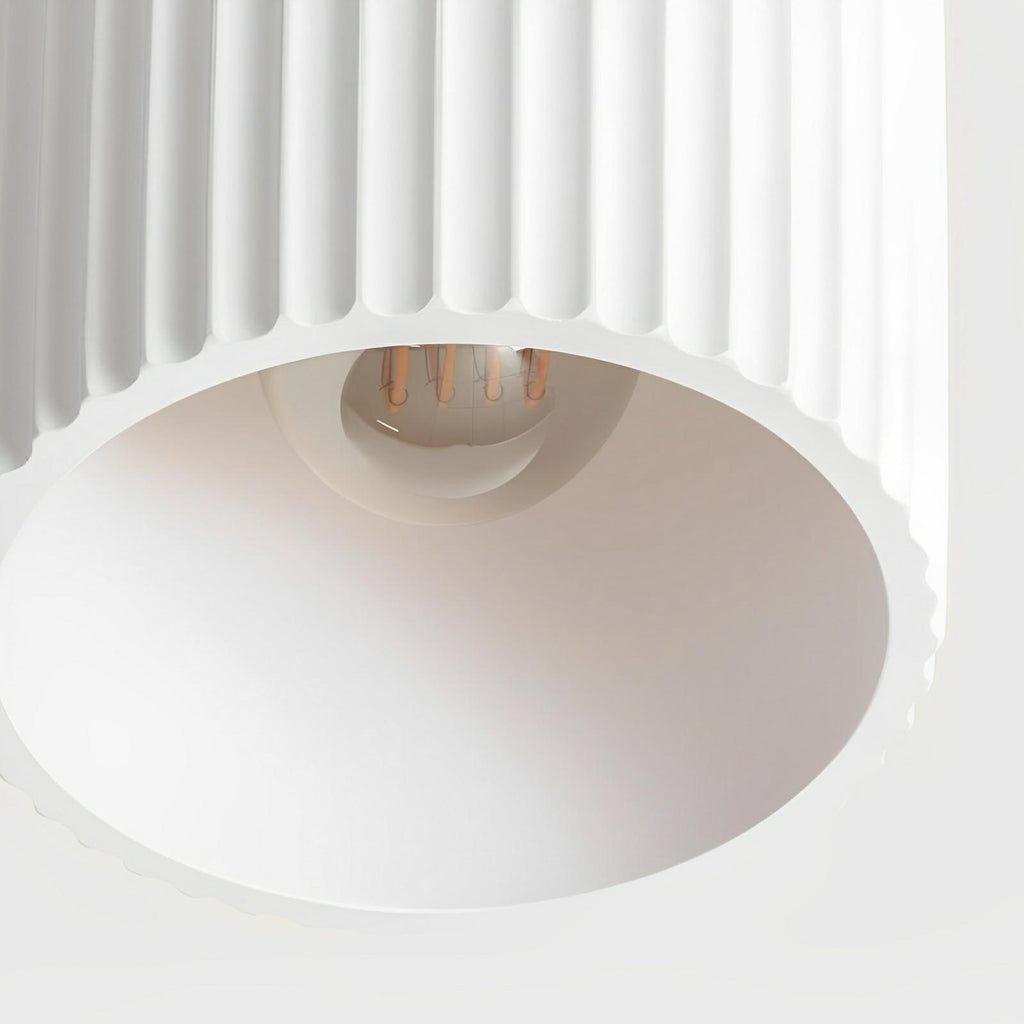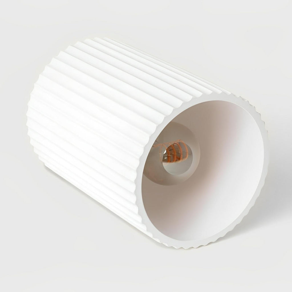 Each fixture is made from gypsum a sustainable, mineral-based material known for its soft matte finish and tactile richness. The ribbed surface adds dimensionality to ceilings, allowing the light to skim across each curve in warm, downward focus. Fitted with a single E27 socket (max 40W), it can be paired with LED globes for long lasting performance. Packaged using low impact, recyclable materials to reduce environmental footprint.