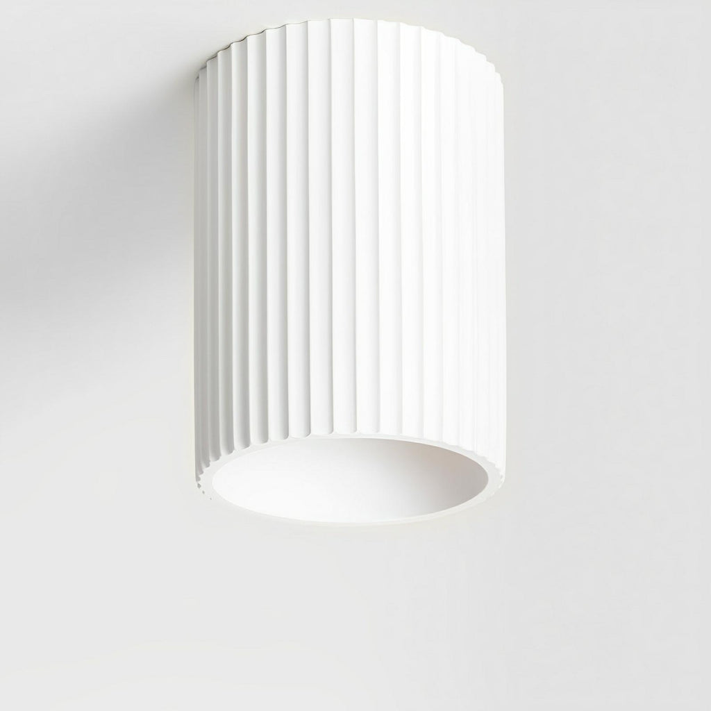The Molten surfacemounted downlight is a study in sculptural simplicity. Cast in gypsum plaster and refined by hand, it channels the purity of classical design through a ribbed cylindrical form. This piece is part of a wider conversation around natural materials and grounded elegance an expression of restraint and intention that aligns seamlessly with the Ore aesthetic.