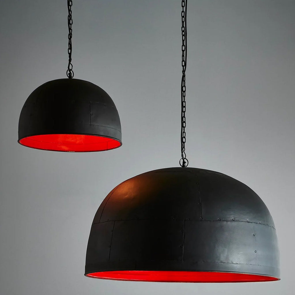 Noir Iron Dome Pendant Light Extra Large E27 in Black/Gold or Black/Red Zaffero - ZAF11045GD, ZAF11045RD