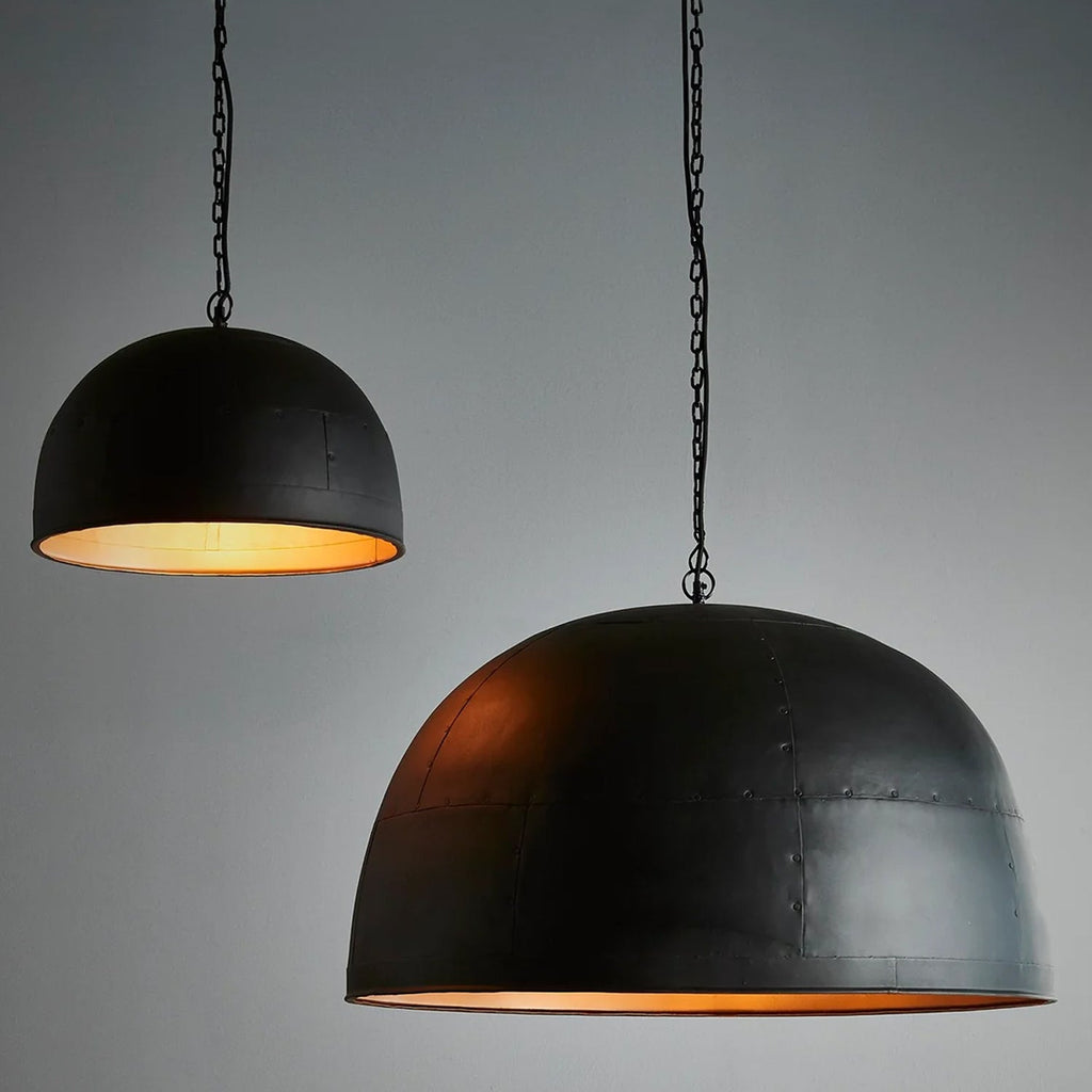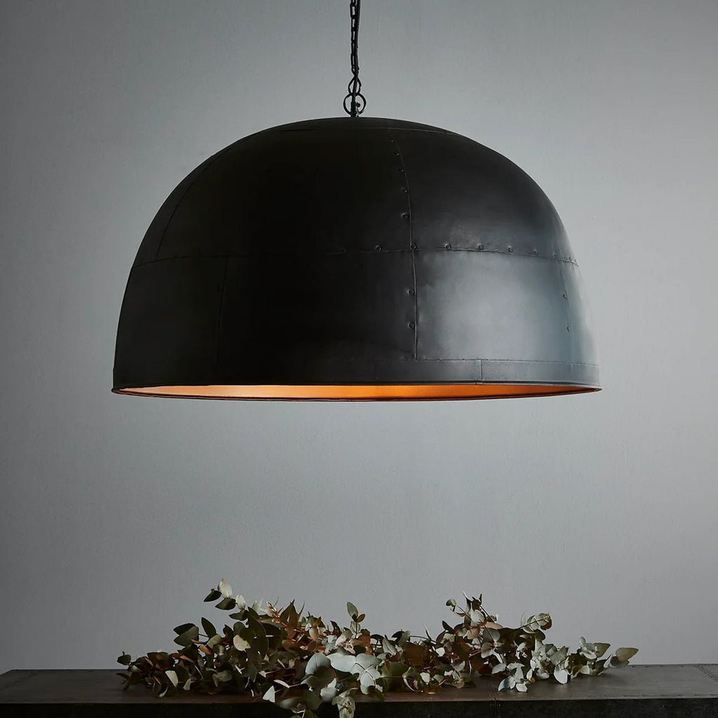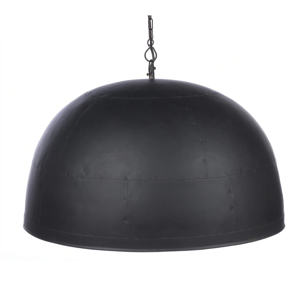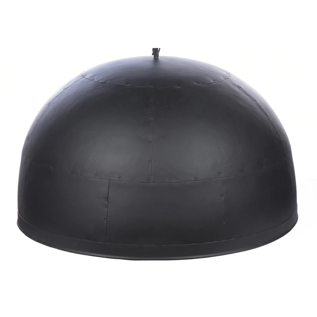 An oversized riveted dome with a matte black exterior and a subtle gold interior.