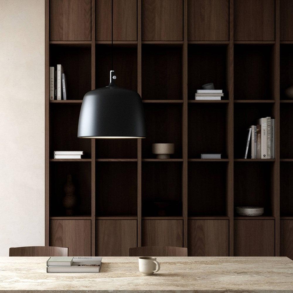 Danish design duo Bjørn + Balle has created Norbi - A minimalist pendant with an industrial touch. The matte shade is contrasted by a brushed steel detail that enables the shade to move up and down. Moving the shade up helps to creates more light that spreads into the room, and moving it further down focus' the light source - creating adaptable lighting for different situations.