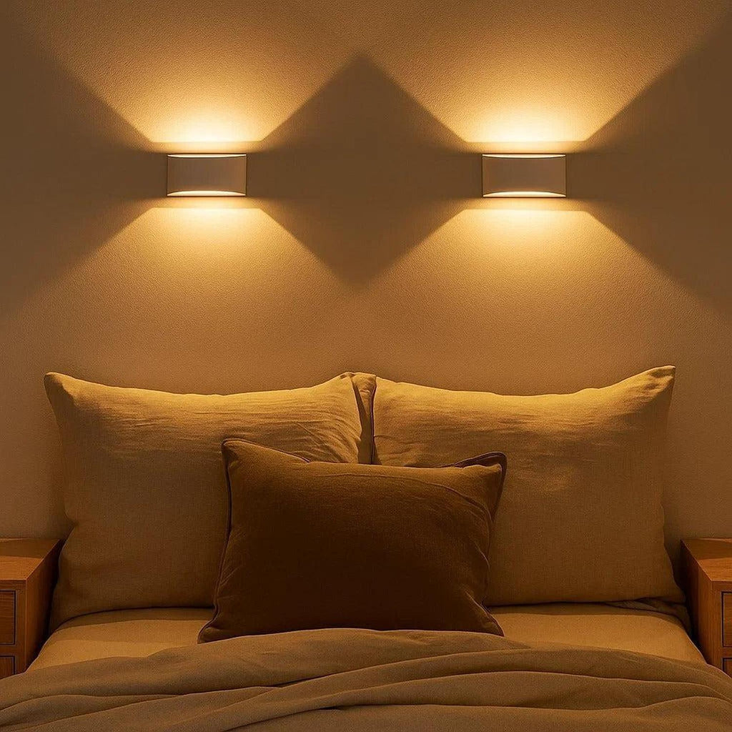 Designed for contemporary interiors, Numa features dual G9 fittings that cast gentle illumination upward and downward. Its minimalist geometry complements both plaster and concrete finishes, embodying balance, simplicity, and refined form.