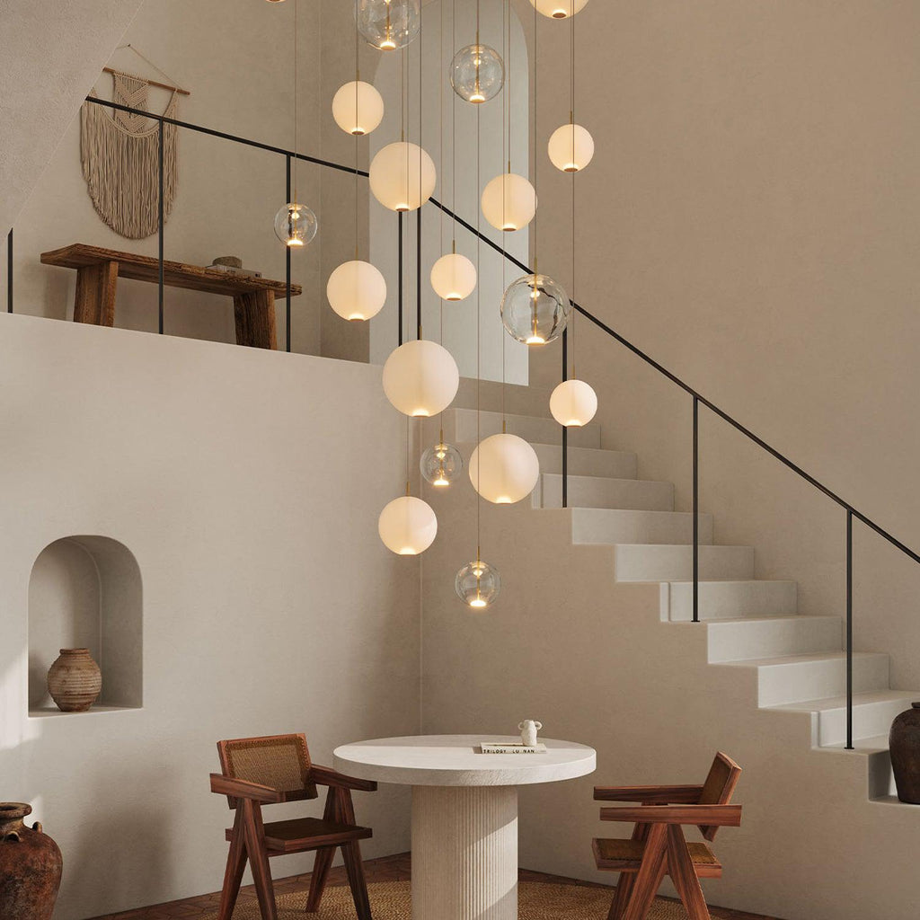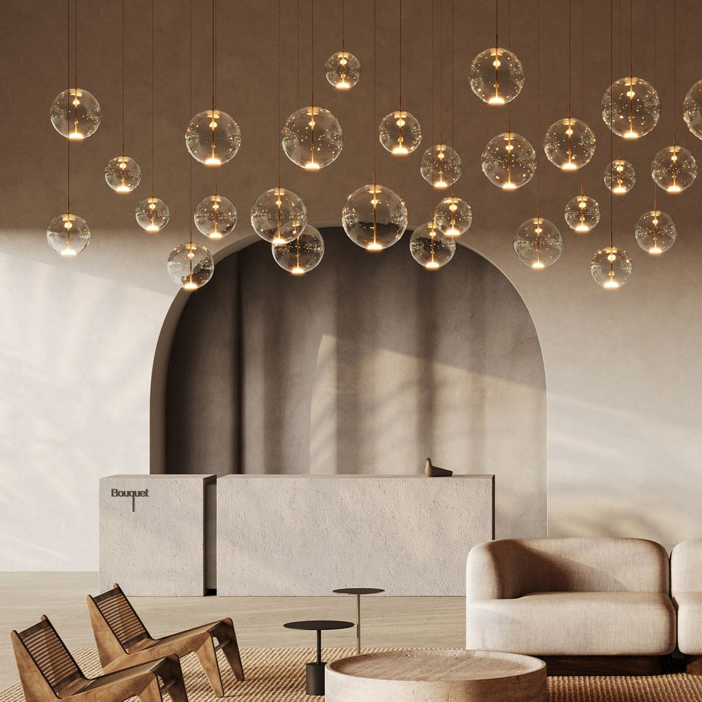 The three sizes and two different f inishes offer a variety of arrangements — as individual suspensions, or in airy combinations of clusters.