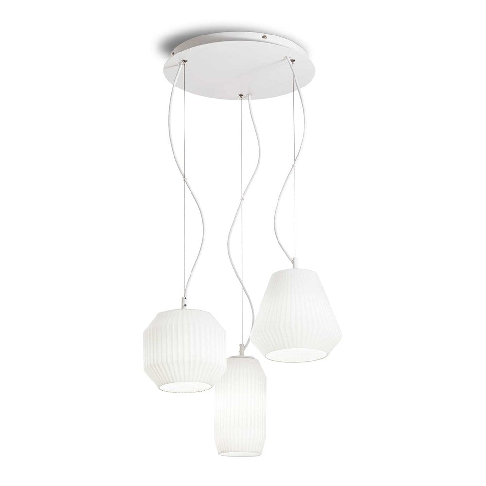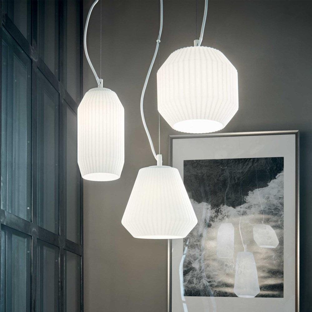 Matt painted metal frame. Diffusers in blown and etched white glass with raised folding effect.