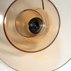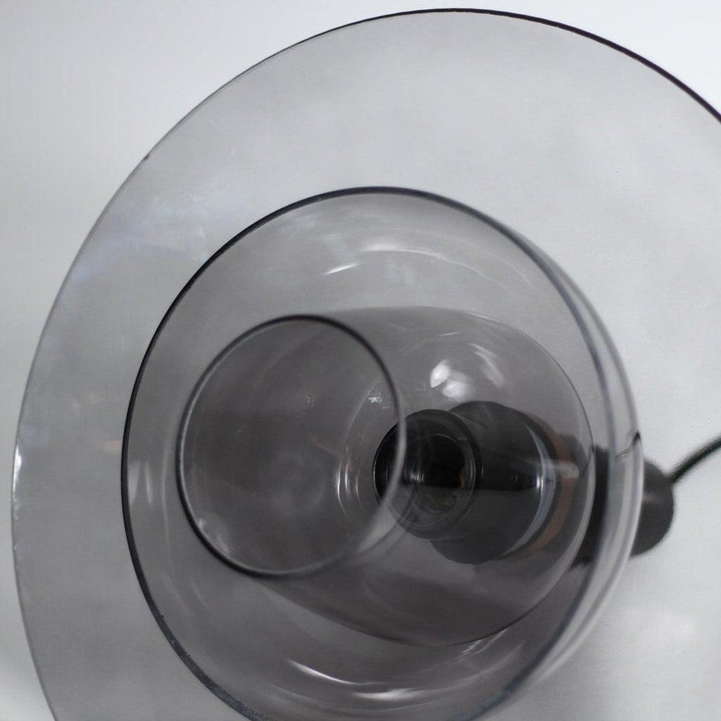 This striking design consists of three inverted glass bowls of descending sizes that cascade almost like flower petals. This unique glass design is fixed to a matte black cylindrical base with a stylish slimline copper collar. There are two different colour glass shades, including a lighter and darker tone. The glass filters light ascending ambient coloured light up to the ceiling while the open centre allows unobstructed light to be directed directly below.