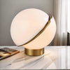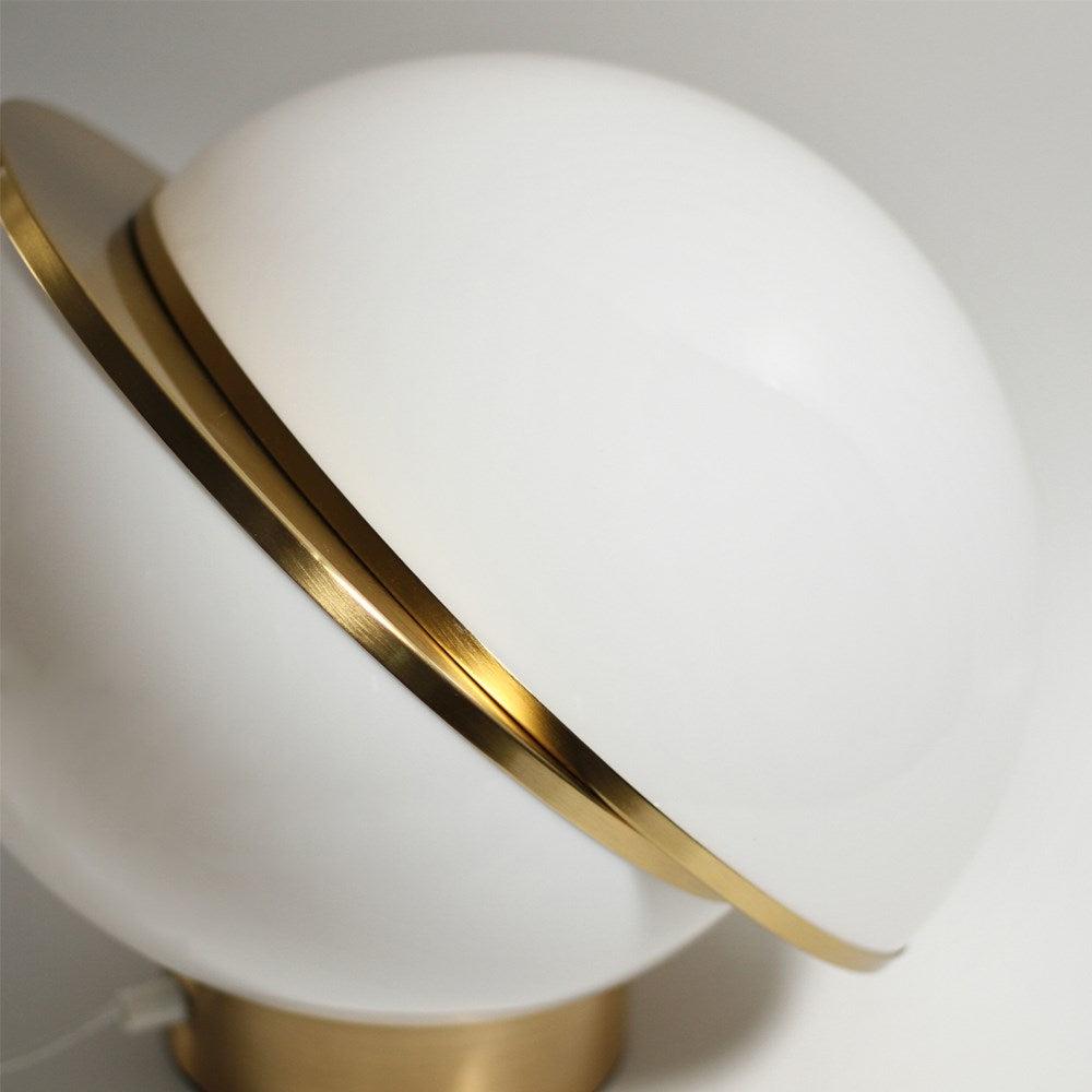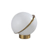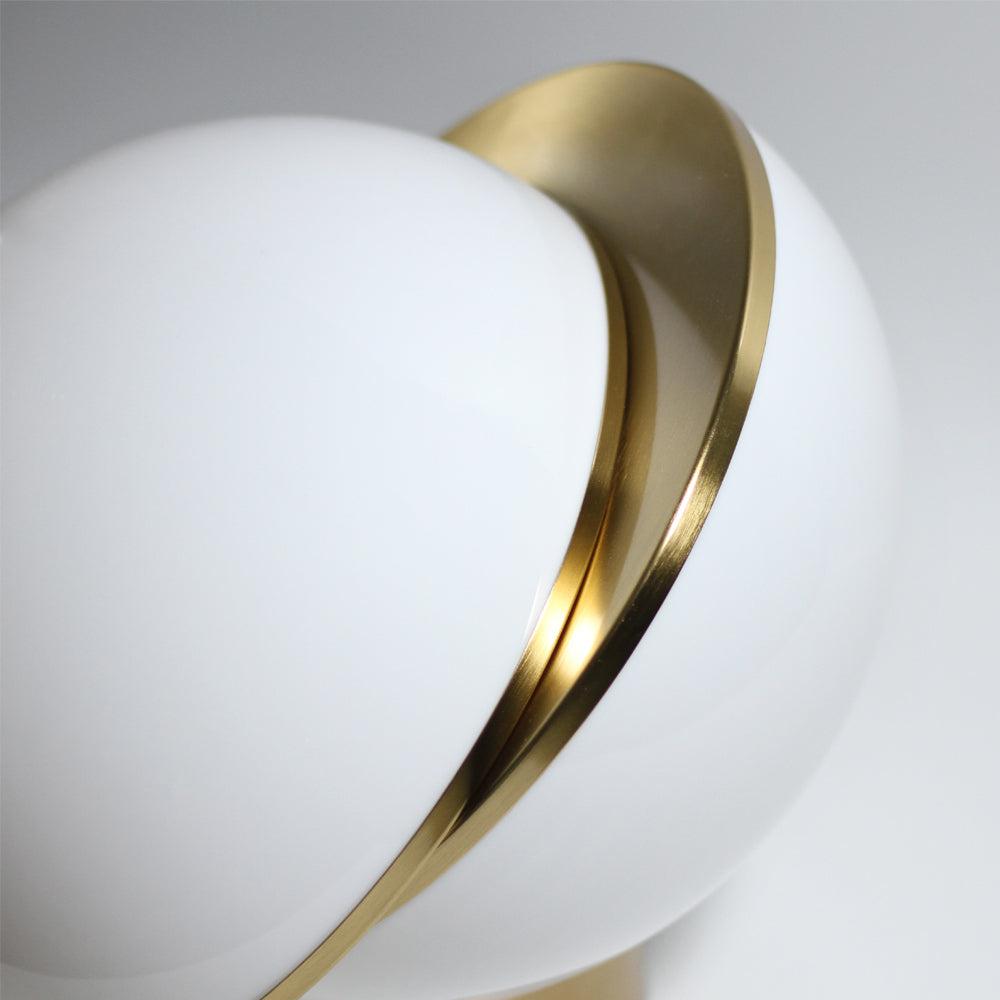 The Padgett light series offers an almost surrealist vibe, using a split, off-centre design that utilises a matte white spherical light cover that filters light 360° around the orb and features elegant golden accents through the centre split and the base or ceiling mount.