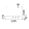 Rosette and metal frame. Diffusers in white, blown and etched layered glass. Transparent Teflon electrical cable. Finishes: matt black or satin brass.