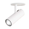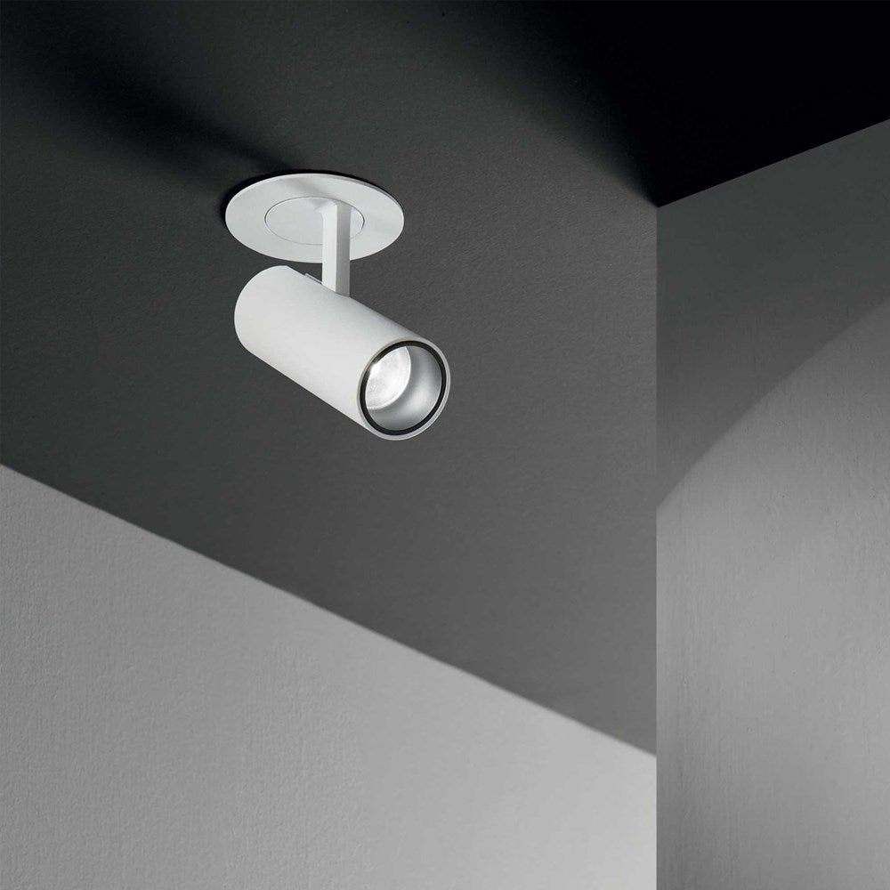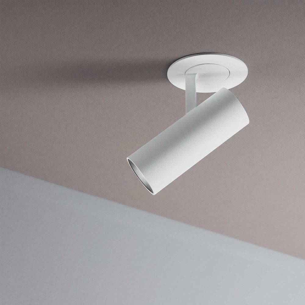 Base, joint and adjustable light body in powder-coated die-cast aluminium. Knurled transparent acrylic diffuser. Available in black or white finishes with black back cover and internal front ring.