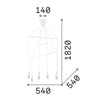 Metal ceiling cup, frame and bulb socket cover with white or black matt varnish finish. Cables adjustable in length.