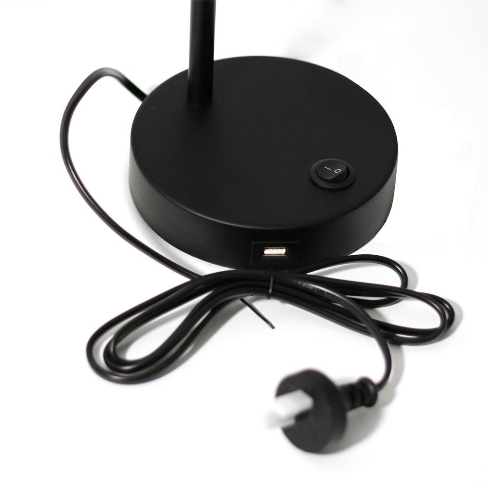 The Rabea Table Lamp has the same aesthetics as the floor lamp; however, its built-in USB socket makes it ideal for bedside tables, lounge rooms, and desk spaces, adding the ease of charging phones and tablets. It also has an easy access switch on the lamp’s base.