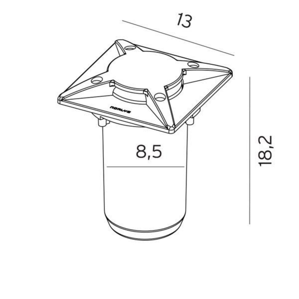 Four sides light distribution covered from the top. Cast aluminium inground lighting fixture. Satin PC lens glass (max 1000kg). Powder painted aluminum cover. (PG in stainless steel for cable 8-12mm). Polypropylene box for installation included.