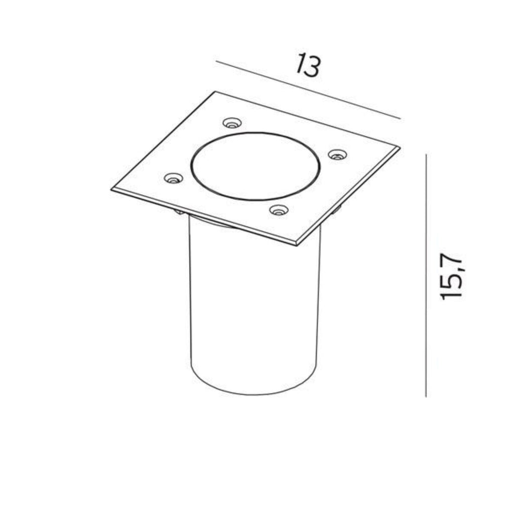 Cast aluminium inground lighting fixture. Tempered safety glass (max 2000kg), stainless steel 316L cover ring. (PG in stainless steel for cable 6,5-7,5mm). Polypropylene box for installation included.