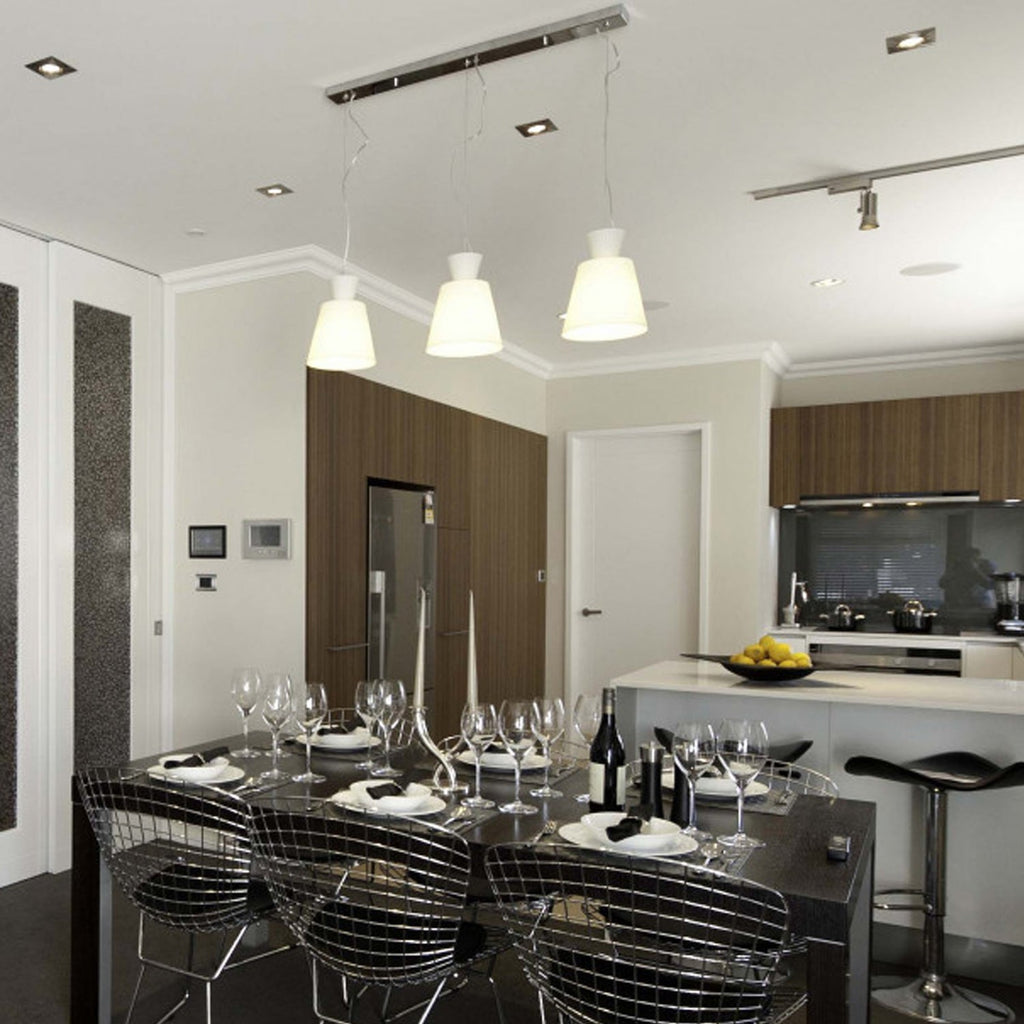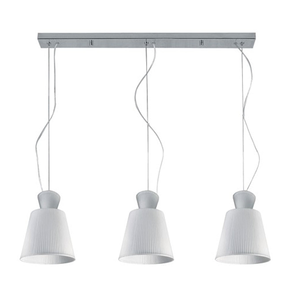 Ribbed Glass Pendant Light 3Lt in White/Chrome Superlux Lighting - QH2149-3S