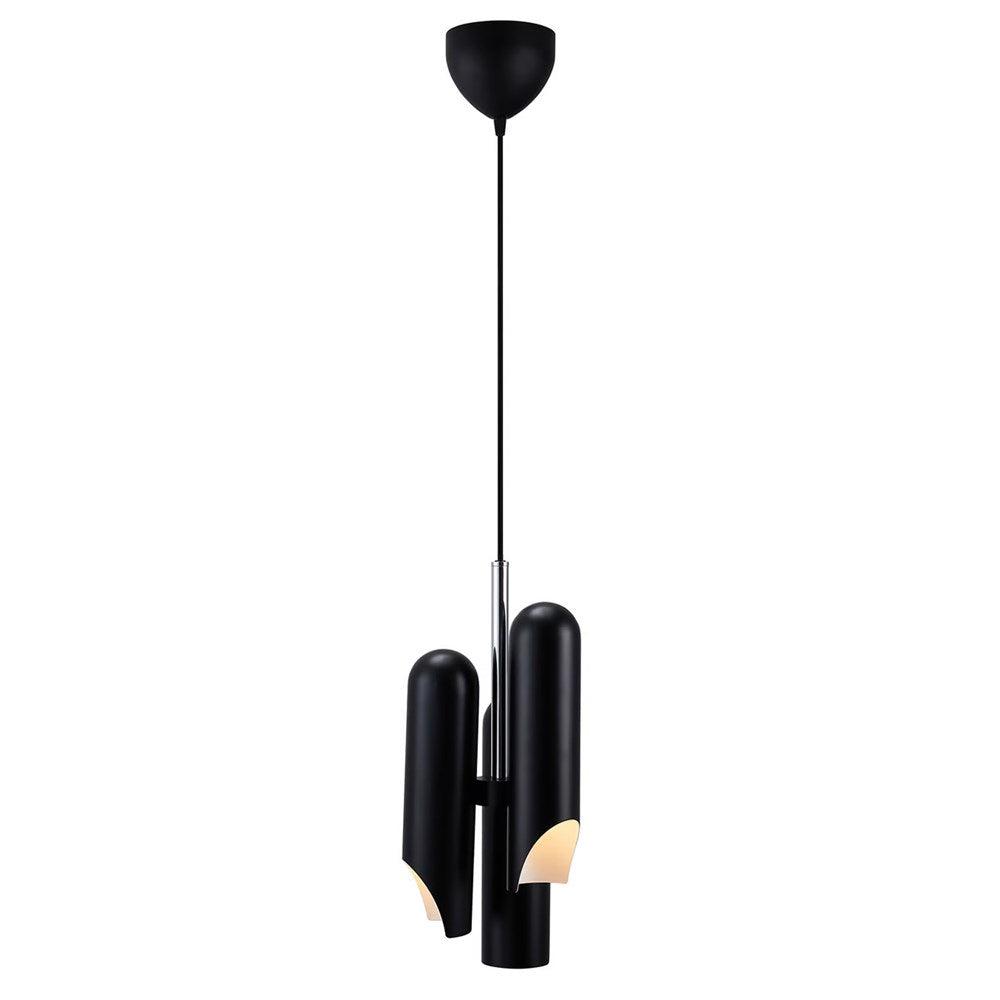 The Rochelle series by Danish designer Charlotte Høncke has a modern Italian design language with three slender, sculptural lamp heads. Cool and almost masculine chrome details add a beautiful contrast to the matte black surface.