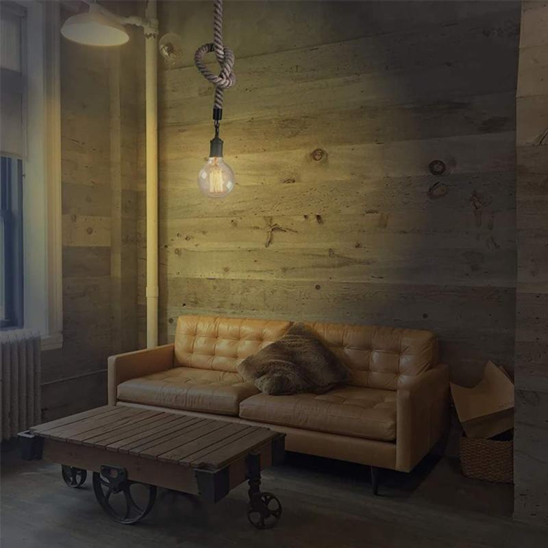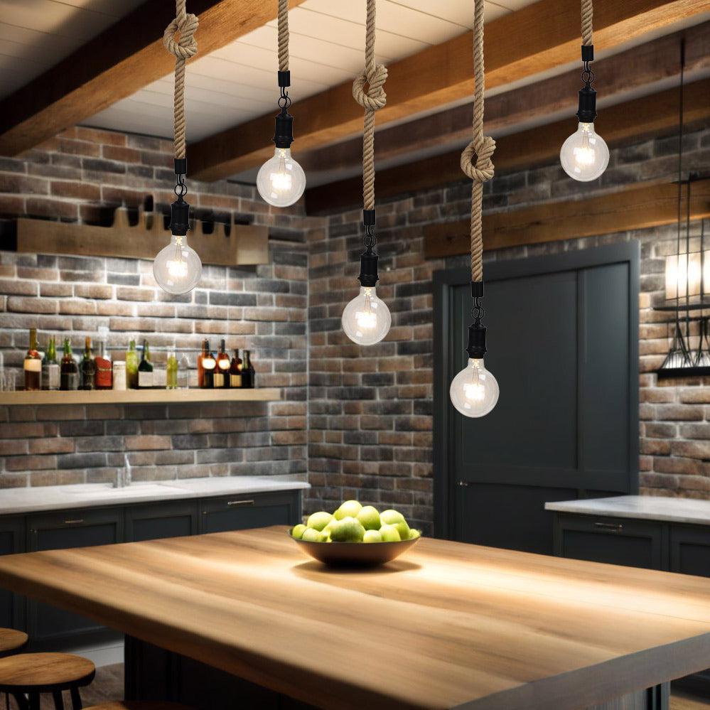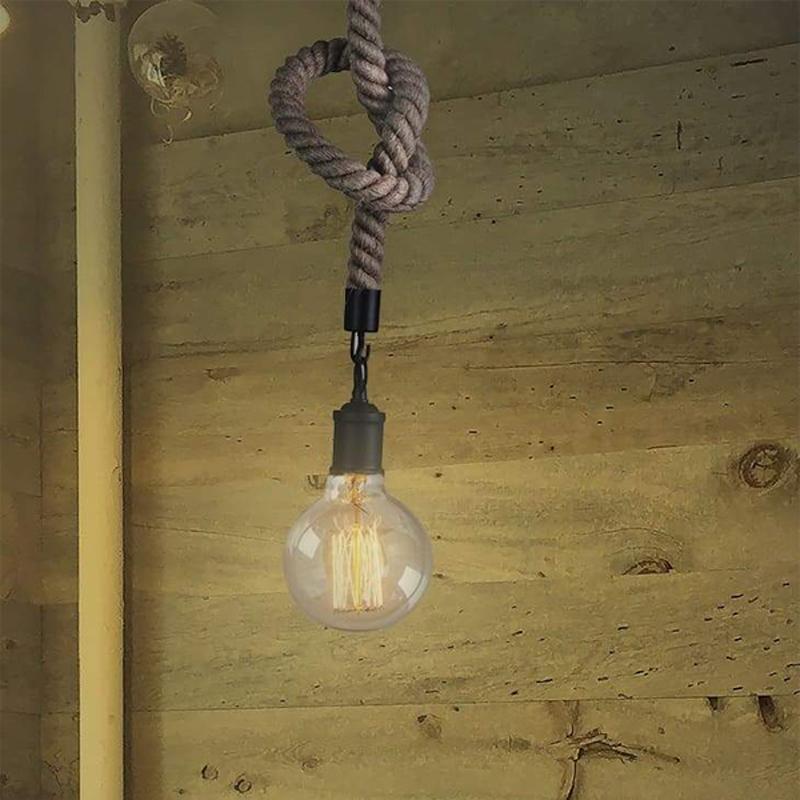 Rope Pendant Suspension. It is exactly what it says it is - a Rope pendant! Power cable enclosed in real raw rope, designed for use with an exposed filament globe, or a shade from our Industrial vintage range. Hang on its own or in a cluster, over the bar, servery or stairwell. Rope is shortened by tying the rope over itself in a loose knot (the shortest length would be 750mm). Part of our Industrial revival range.