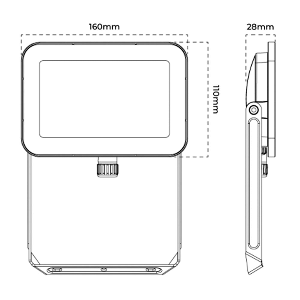 Slim LED Flood Light 30w Power Adjustable Tri-CCT in Black