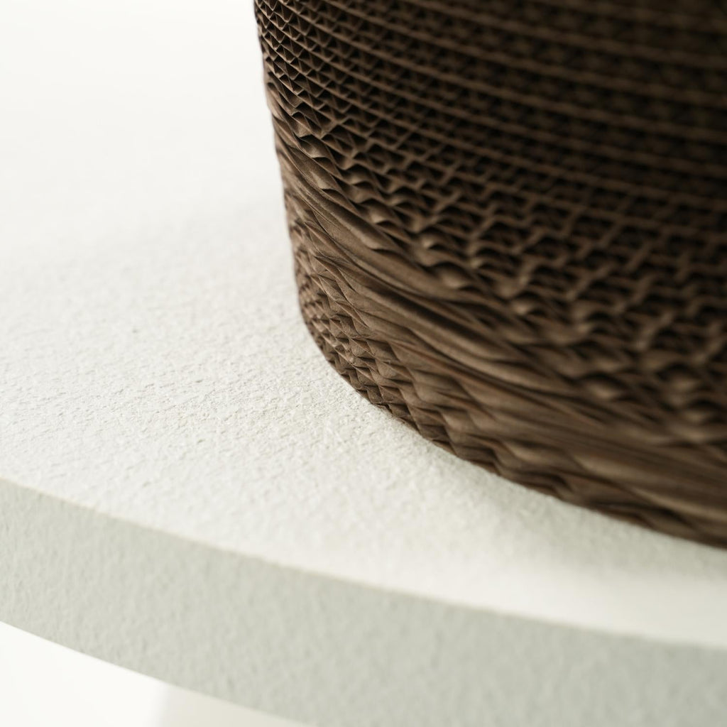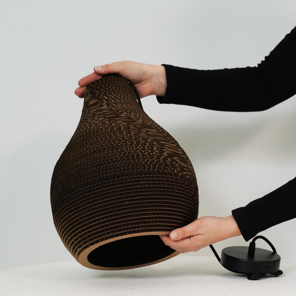Bold in form, warm in spirit, the Solis collection brings sculptural clarity to sustainable lighting. Available in striking cylinder and cone silhouettes, each pendant balances clean geometry with the organic texture of layered recycled cardboard.