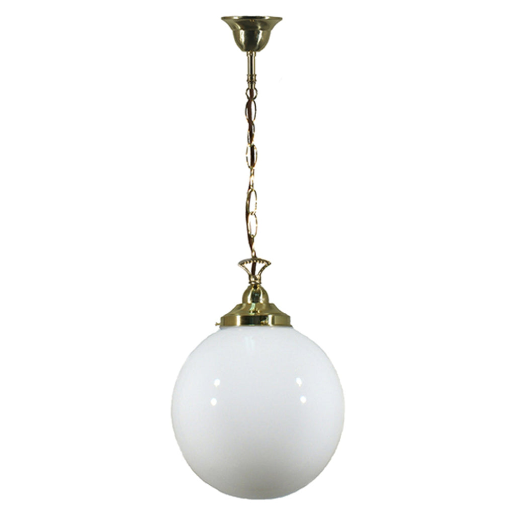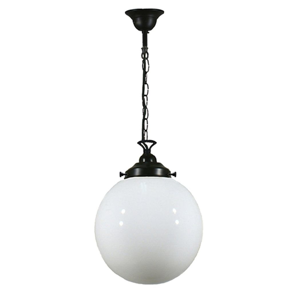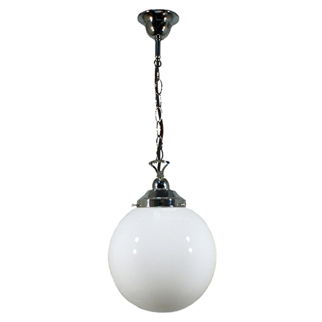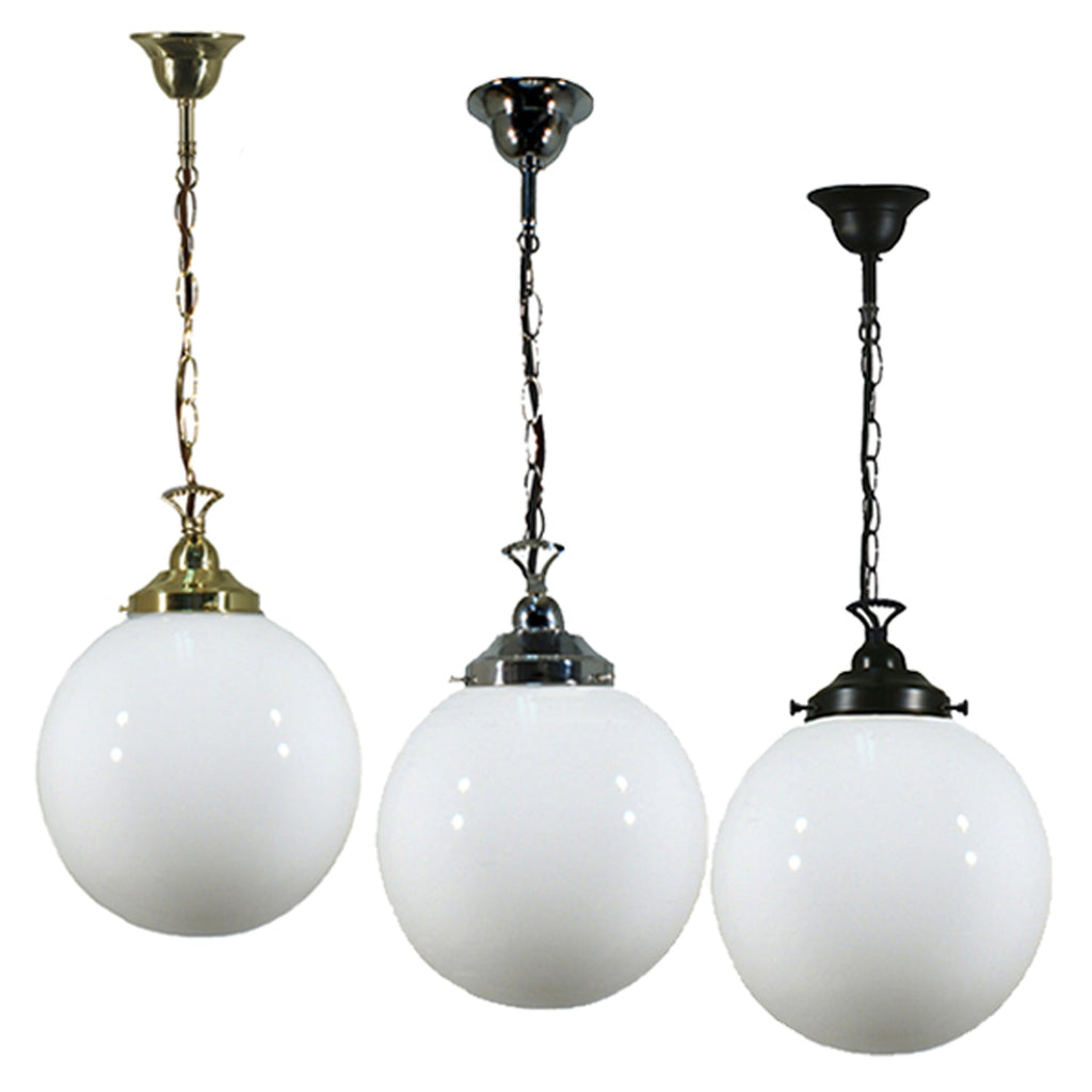 Sphere 10" Chain Pendant Light in Brass, Chrome, Patina Black with Opal Glass