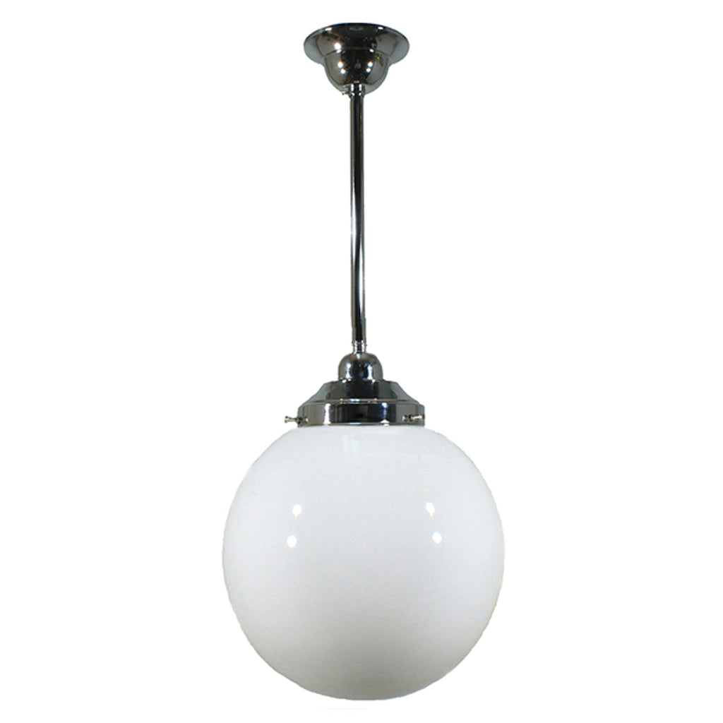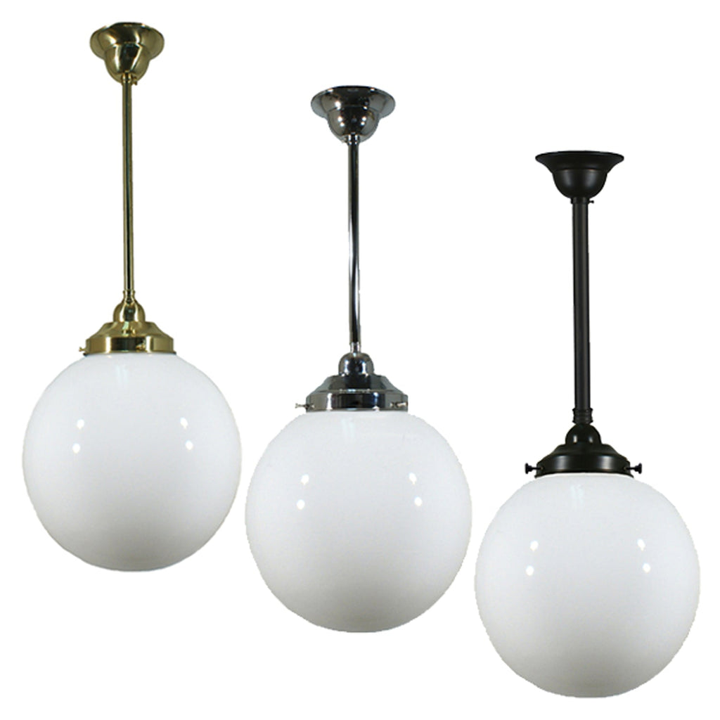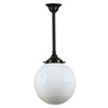 Sphere 10" Rod Pendant Light in Brass, Chrome, Patina Black with Opal Glass