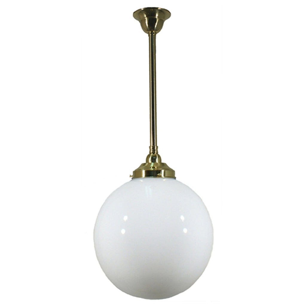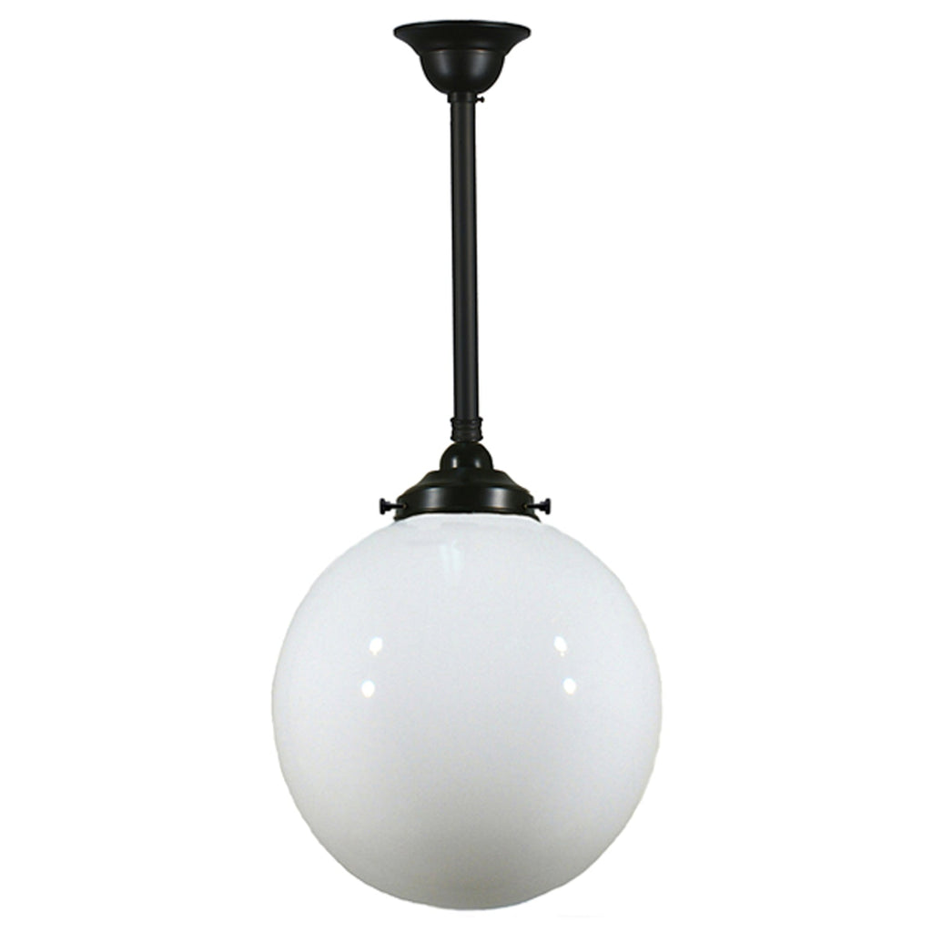 Sphere 12" Rod Pendant Light in Brass, Chrome, Patina Black with Opal Glass