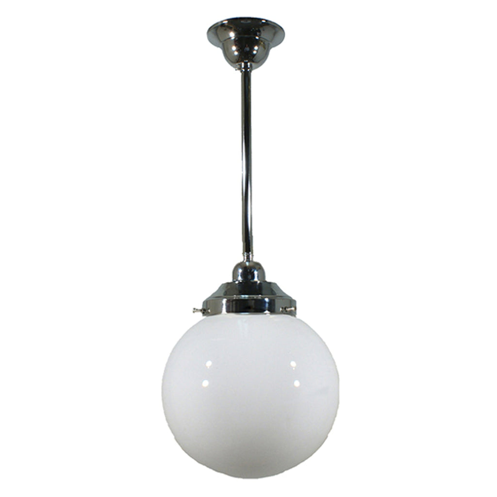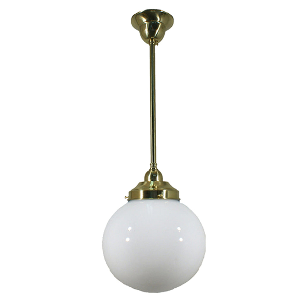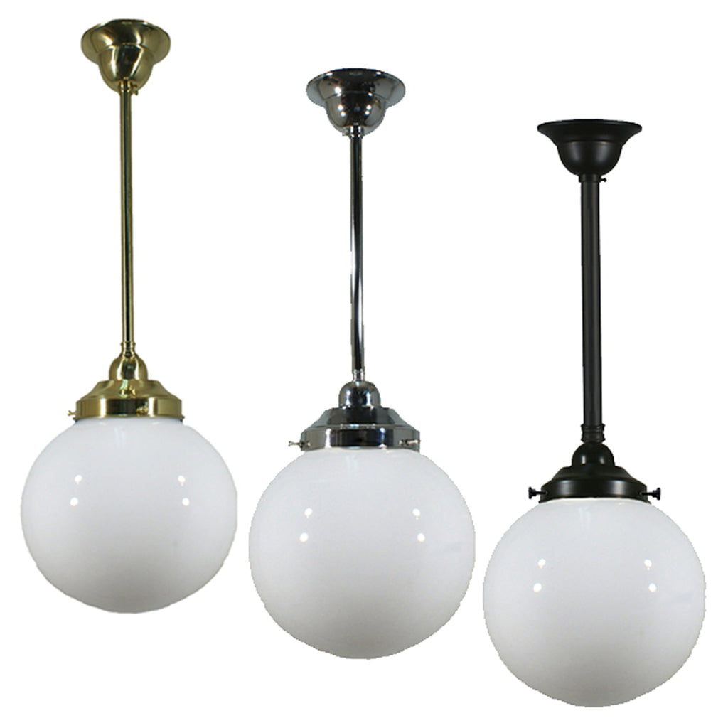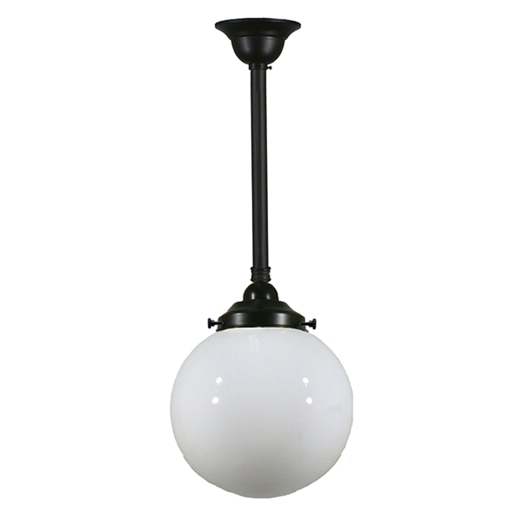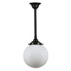 Sphere 8" Rod Pendant Light in Brass, Chrome, Patina Black with Opal Glass
