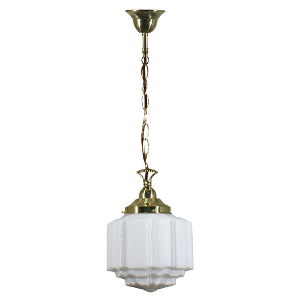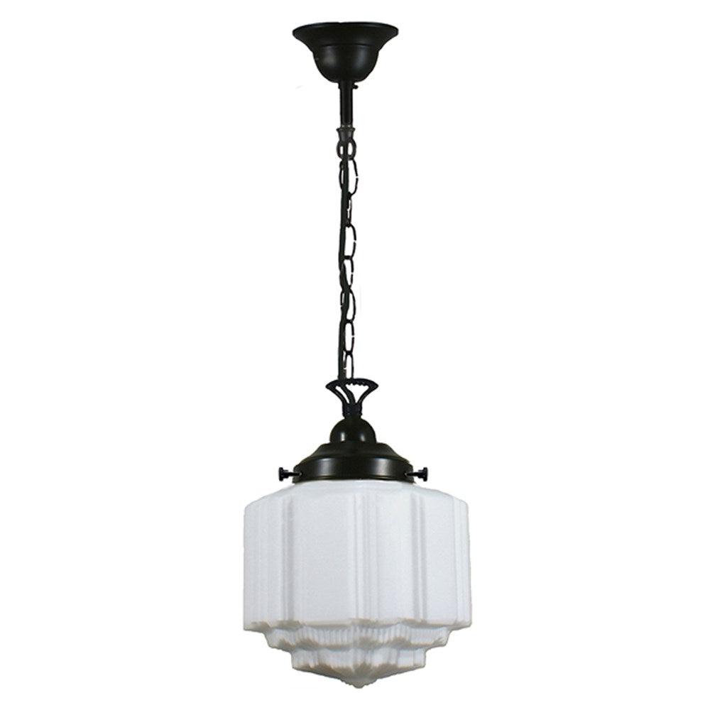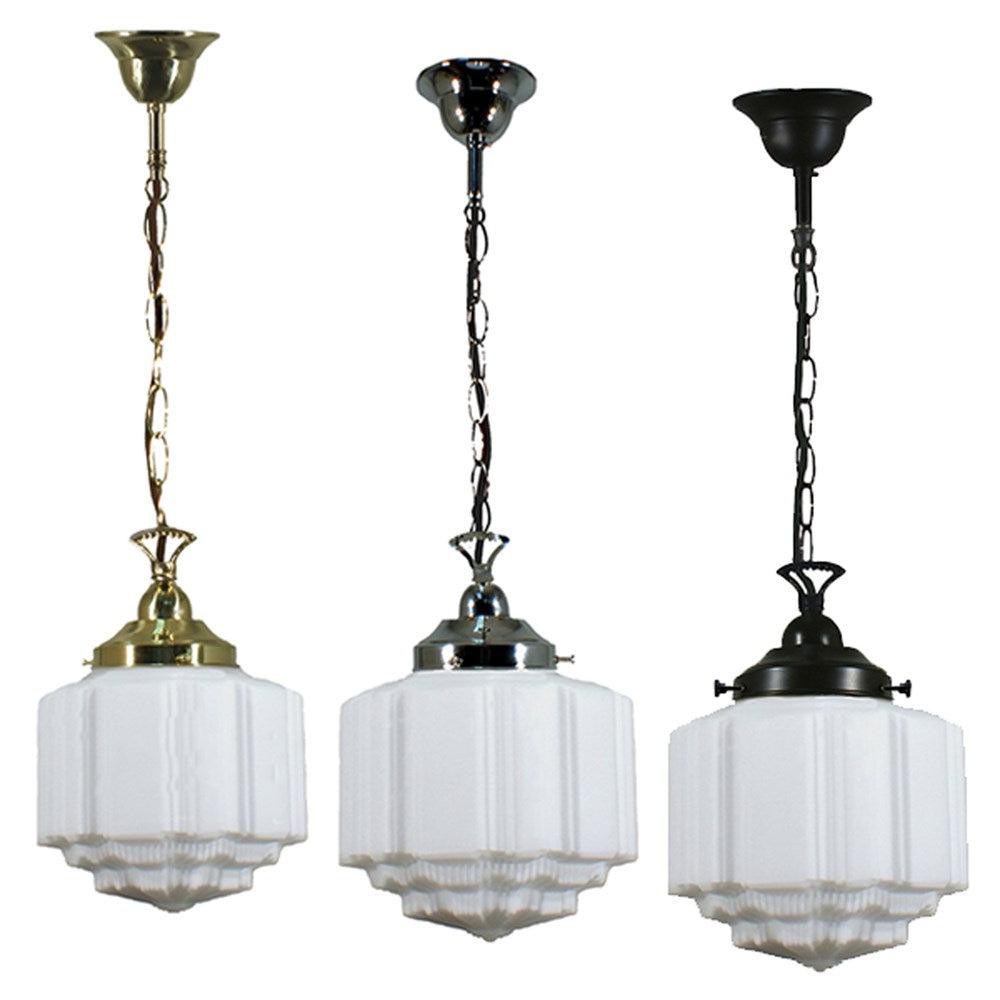 St Kilda 8" Chain Pendant Light in Brass, Chrome, Patina Black with Opal Matt Glass