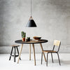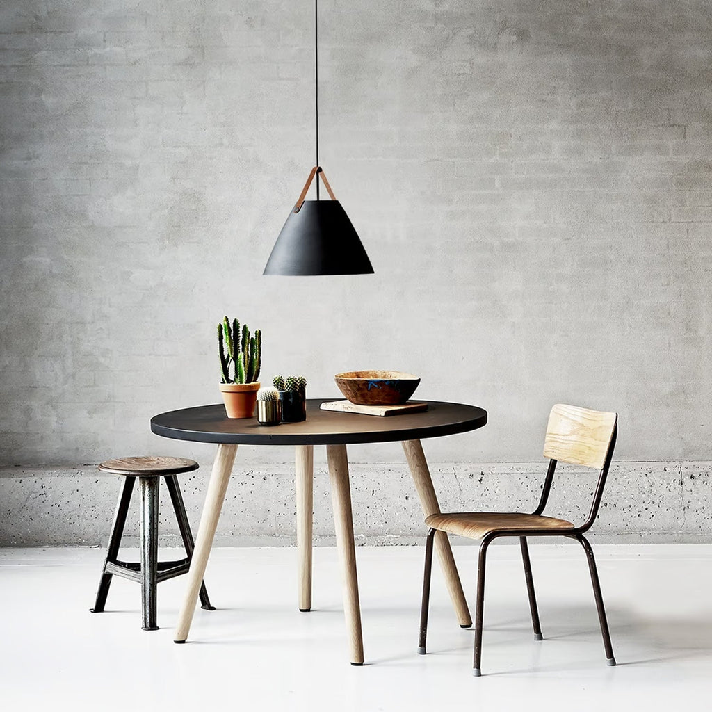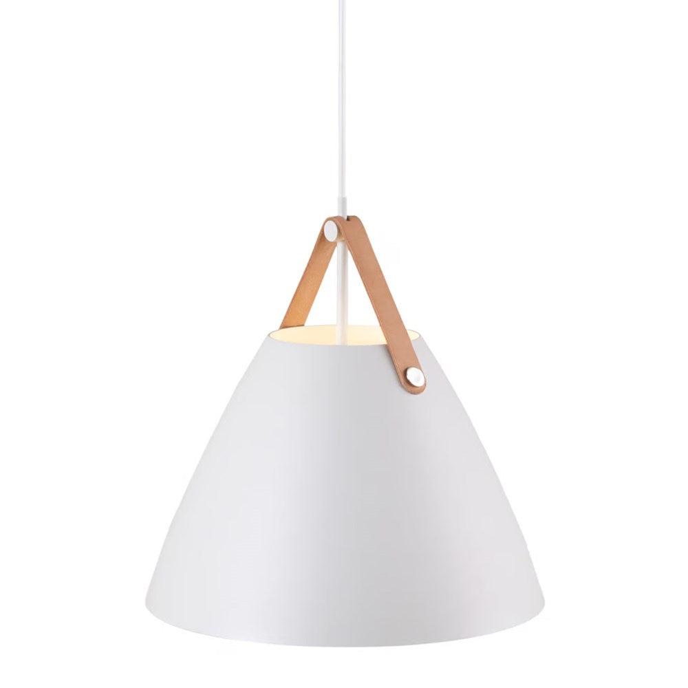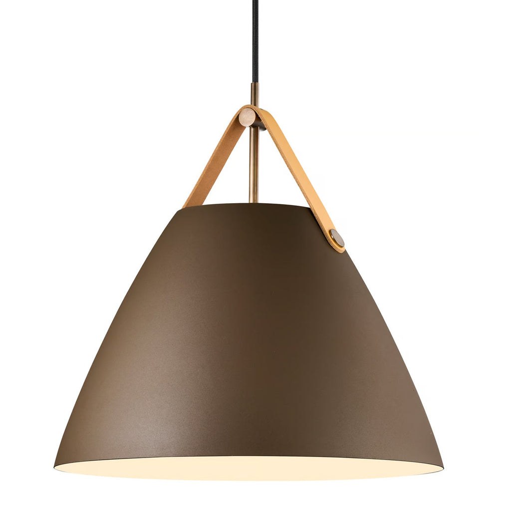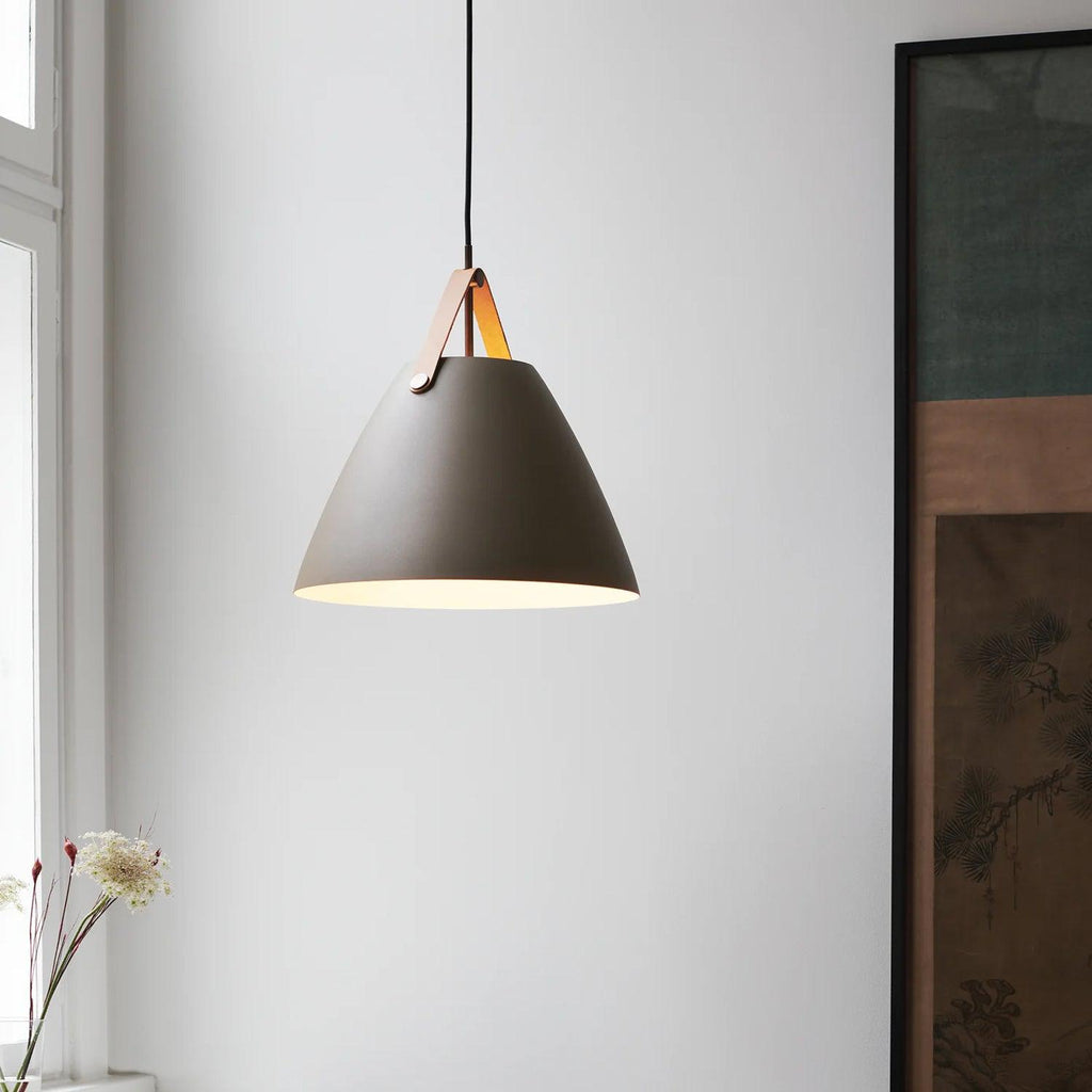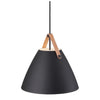 An award winning design, Strap pendant is available in black, white, brushed steel and dark beige. Also available in other sizes. Includes 2 interchangeable leather straps (black and brown). 3000mm fabric cable suspension. Designed in Denmark by Bjørn + Balle
