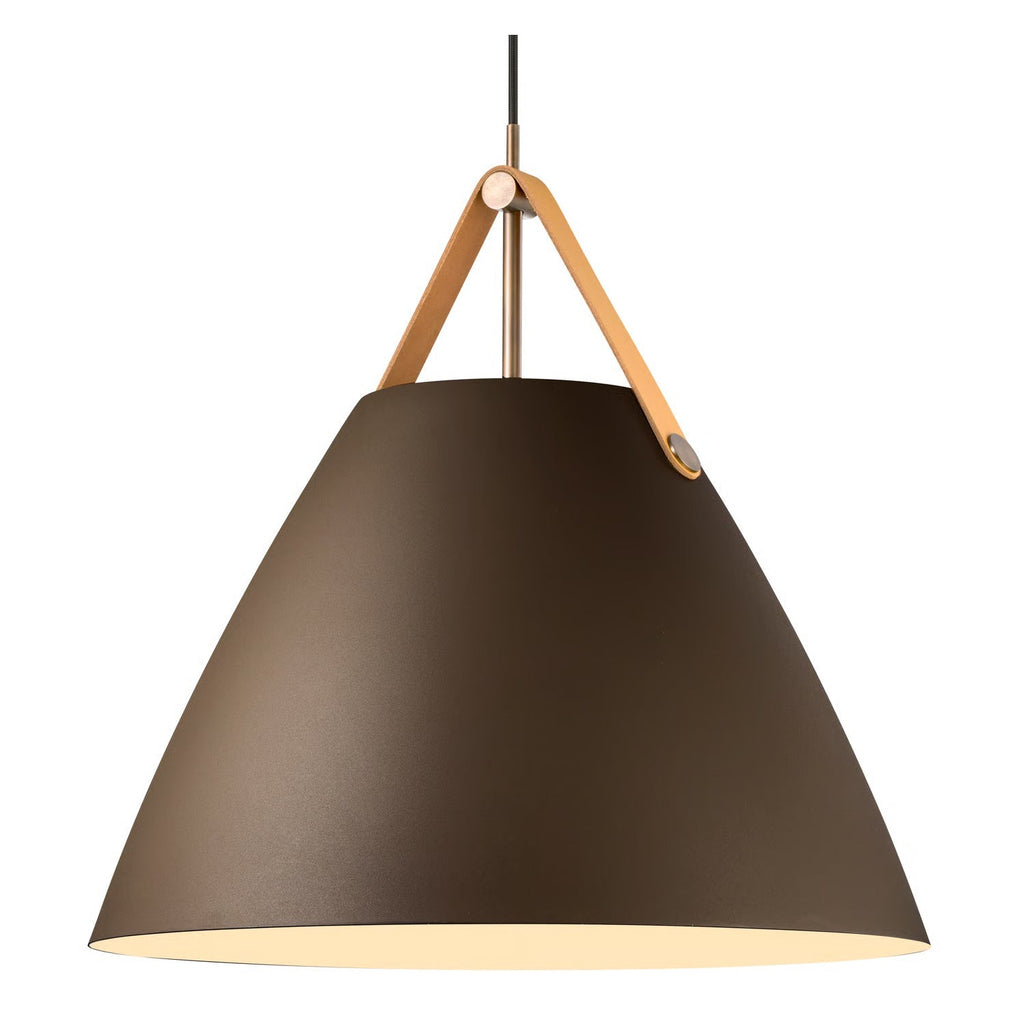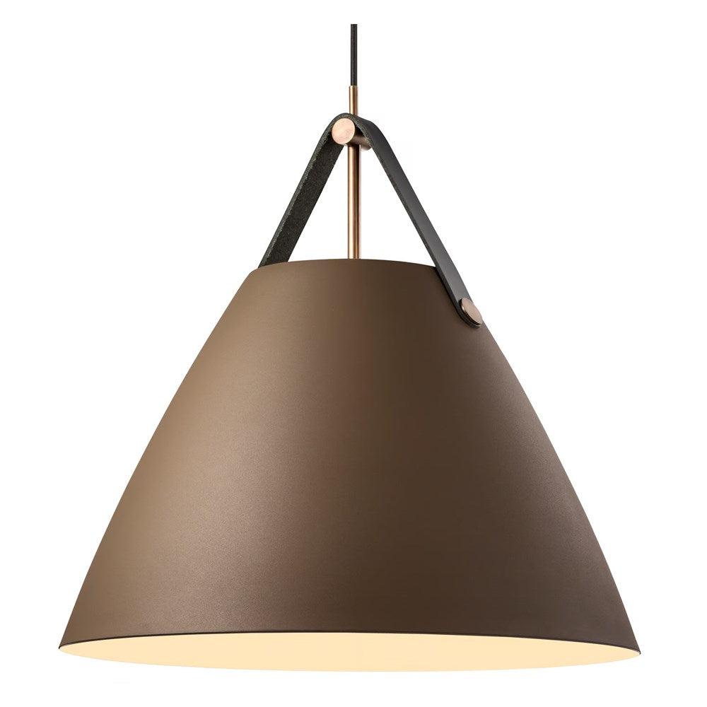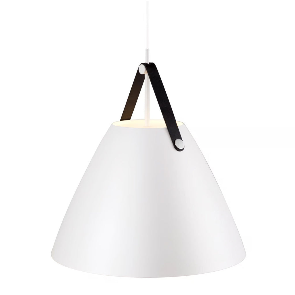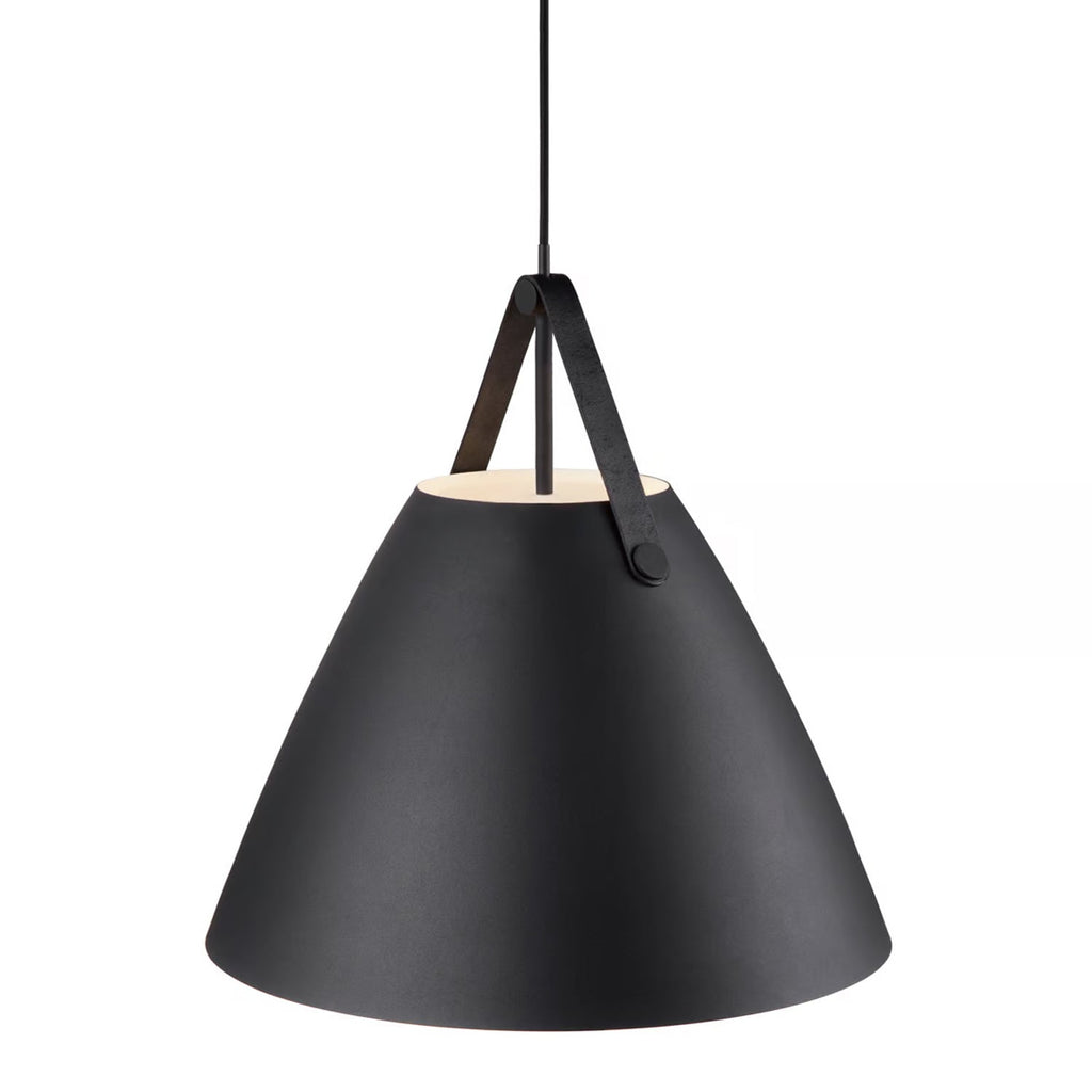 An award winning design, Strap pendant is available in black, white, brushed steel and dark beige. Also available in other sizes. Includes 2 interchangeable leather straps (black and brown). 3000mm fabric cable suspension. Designed in Denmark by Bjørn + Balle