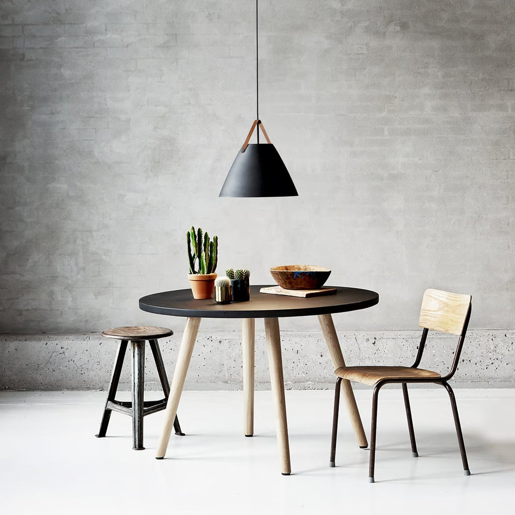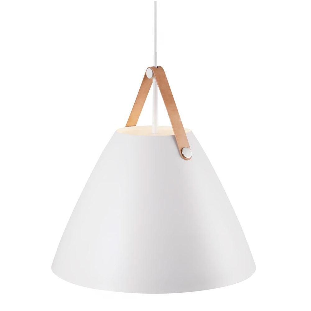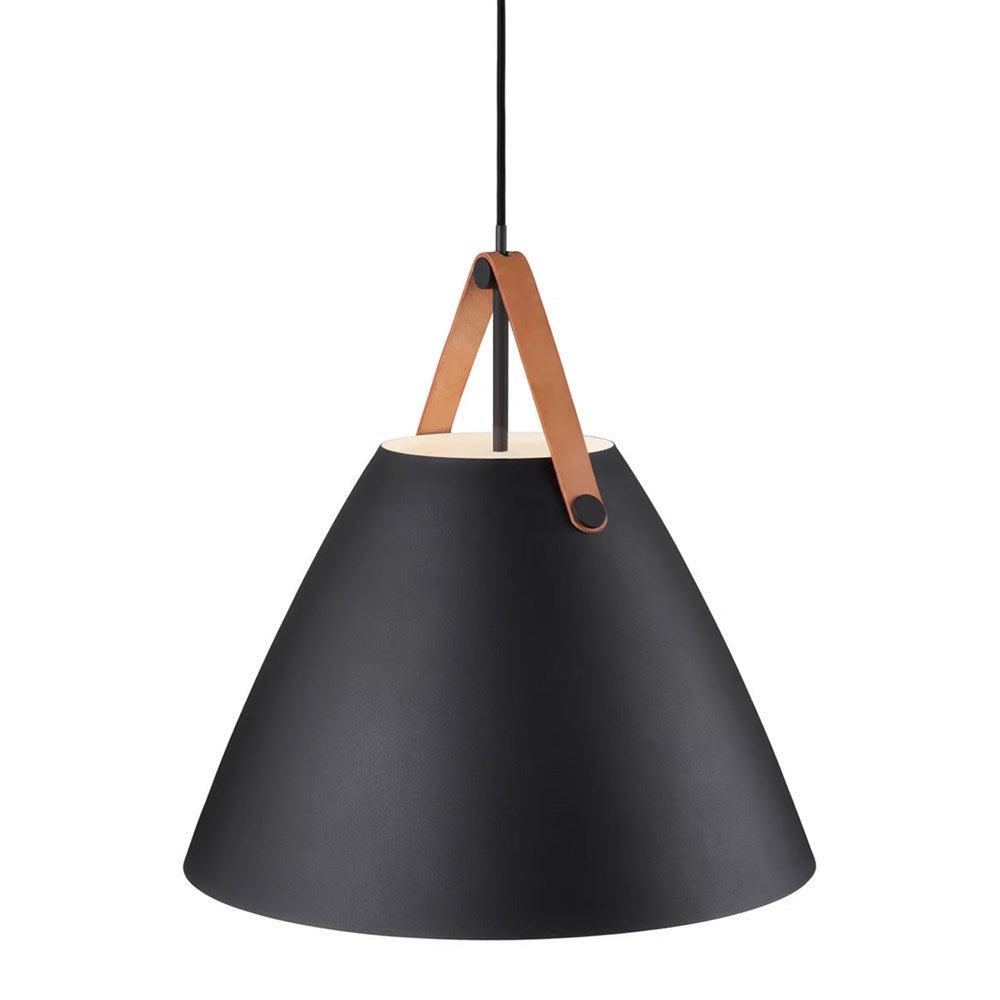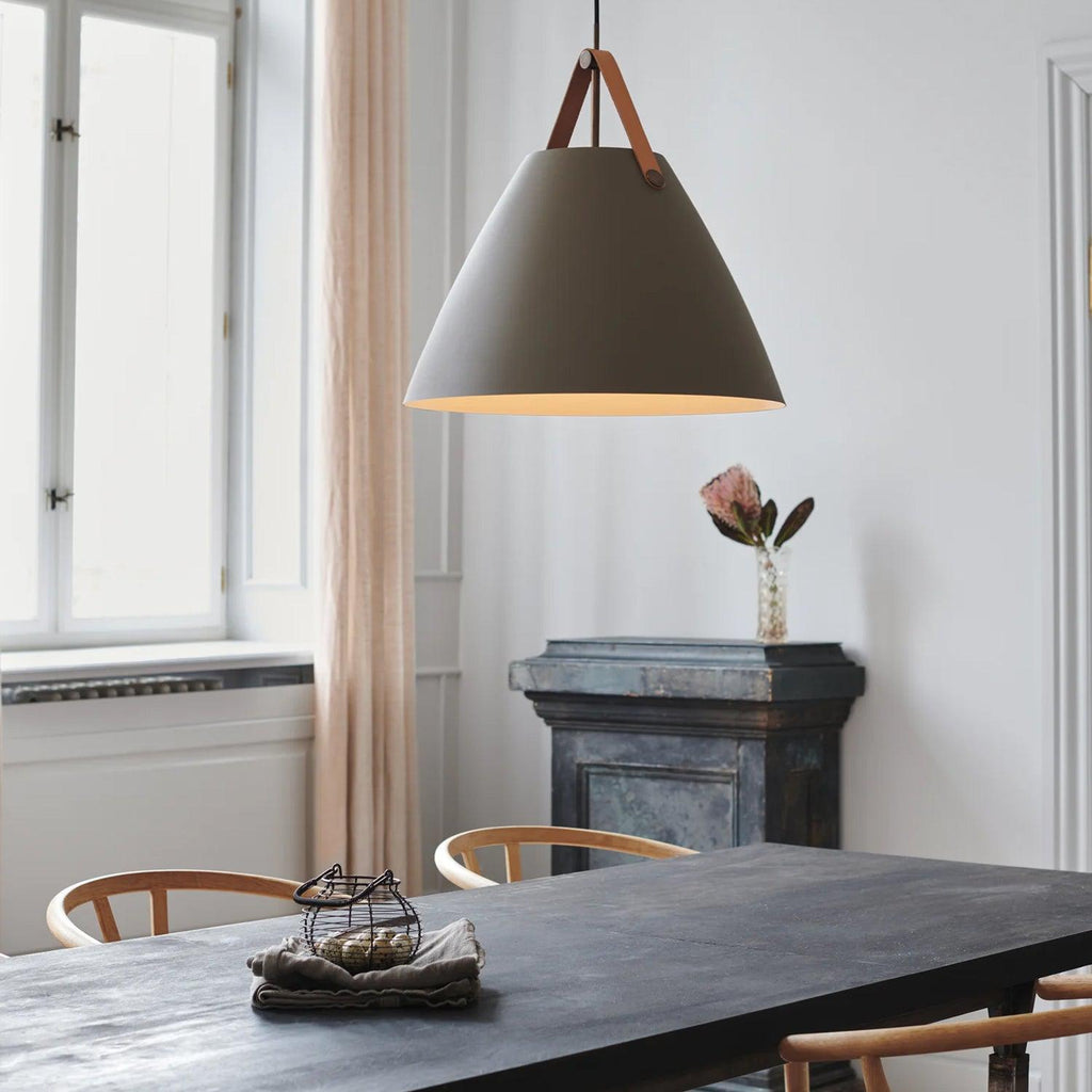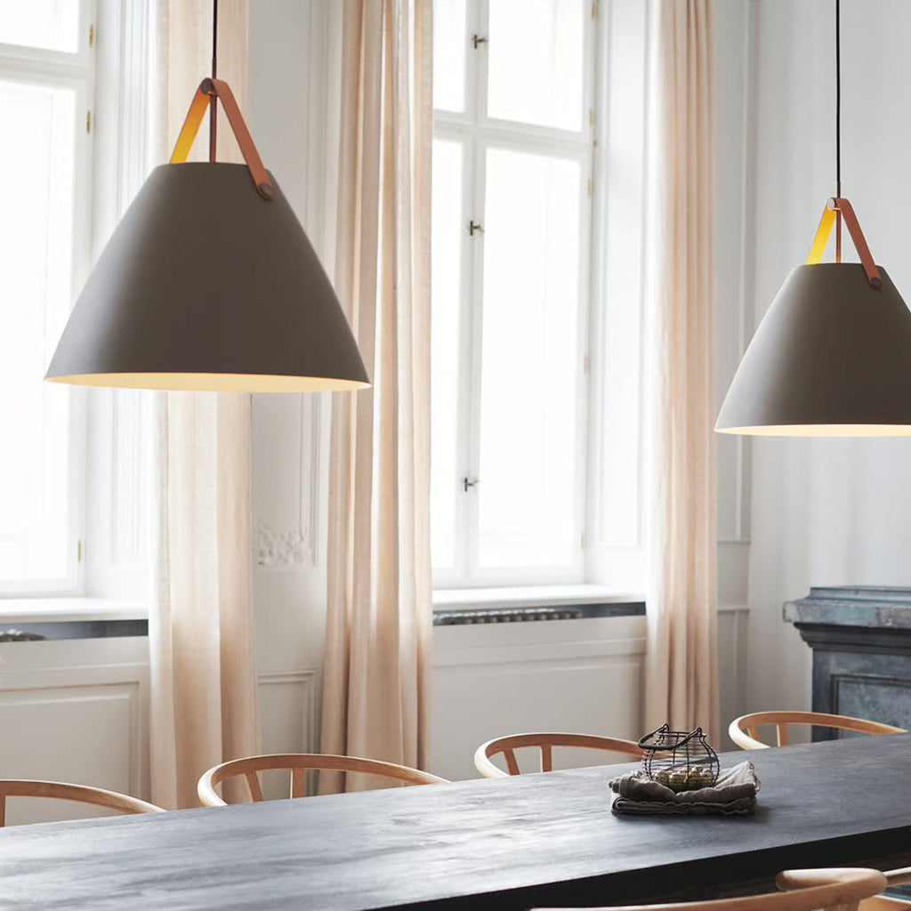 An award winning design, Strap pendant is available in black, white, brushed steel and dark beige. Also available in other sizes. Includes 2 interchangeable leather straps (black and brown). 3000mm fabric cable suspension. Designed in Denmark by Bjørn + Balle